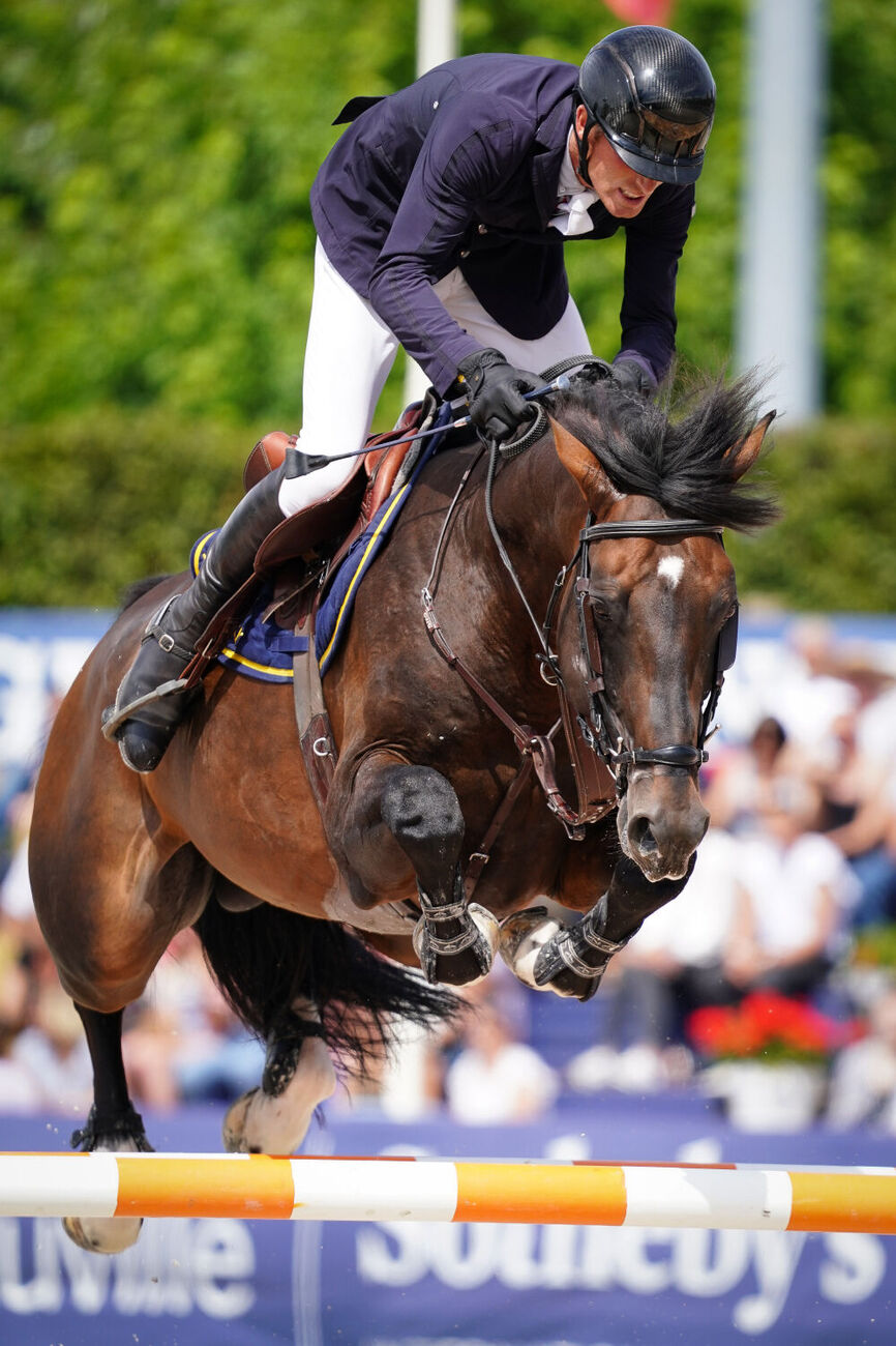Avec Valentin Besnard aux commandes de sa pépite, Corinne Accary retrouve le sourire et l’espoir de voir la chenille devenir papillon. Très rapidement, les performances s’enchaînent. Disposant d’une maigre expérience en raison de ses mésaventures, Beau Gosse rattrape son retard. Si les pauses forcées liées à la pandémie de Covid-19 puis à l’épizootie de Rhinopneumonie freinent sa progression, 2021 est enfin l’année de la concrétisation. Avec son cavalier tricolore, le petit-fils de Kannan laisse entrevoir l’étendue de son talent. Il signe un double zéro et se classe sixième de son premier Grand Prix 3* à Cabourg Classic en juin 2021, puis termine onzième de sa deuxième tentative à ce niveau, un mois plus tard, à Dinard, pour un point de temps dépassé. À l’automne, le duo vit ses meilleures heures et brille dans ses deux premiers Grands Prix 4*, avec un cinquième rang décroché à Saint-Lô puis une victoire à Rouen un mois plus tard. Moins fructueux, le début de l’année 2022 voit le binôme s’offrir une deuxième place dans une épreuve à barrage à 1,50m lors d’un CSI 3* organisé à Lanaken, puis affronter son premier Grand Prix 5*, bouclé avec quatorze points. La machine semble lancée et Corinne sent qu’elle touche du doigt l’avenir dont elle a toujours rêvé pour son protégé. “L’aventure entre Beau Gosse et Valentin a été superbe. Ils ont décroché plein de classements et de bons résultats. Beau Gosse était certainement prédestiné à concourir au très haut niveau”, assure l’éleveuse. Seulement, “à ce moment-là, les portes de l’équipe de France étaient moins ouvertes que maintenant”, regrette-t-elle. “Je me suis laissé griser. J’avais envie que mon cheval évolue au niveau 5* et je sentais qu’il ne le ferait pas en France. Alors, il est parti en Belgique, chez Grégory Wathelet, que je côtoyais déjà sur les terrains de concours à l’époque de Diabolo. Valentin m’en a beaucoup voulu à ce moment-là, et je m’en suis aussi voulu. Ce n’était pas une décision facile, mais c’est celle que j’ai prise. C’est ainsi.”