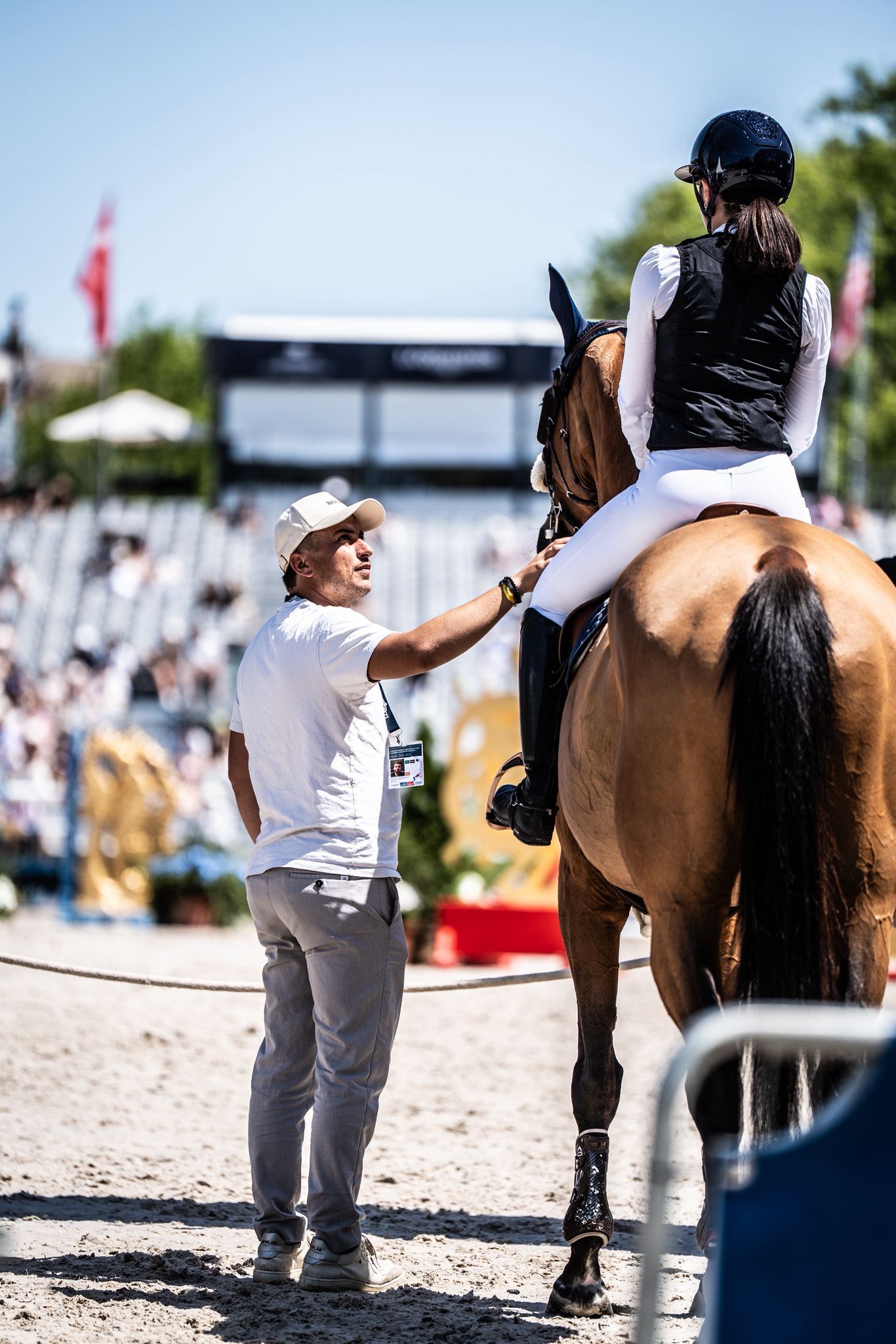 Evan Sombardier et Caroline Baudry, cavalière amateur qui monte sous les couleurs de Barnes au CSI GCT 2025 à Paris, avec la jument Élysée Peguignon (Baloubet du Rouet x Diamant de Semilly) vendu en 2025 © Kenza Attouche