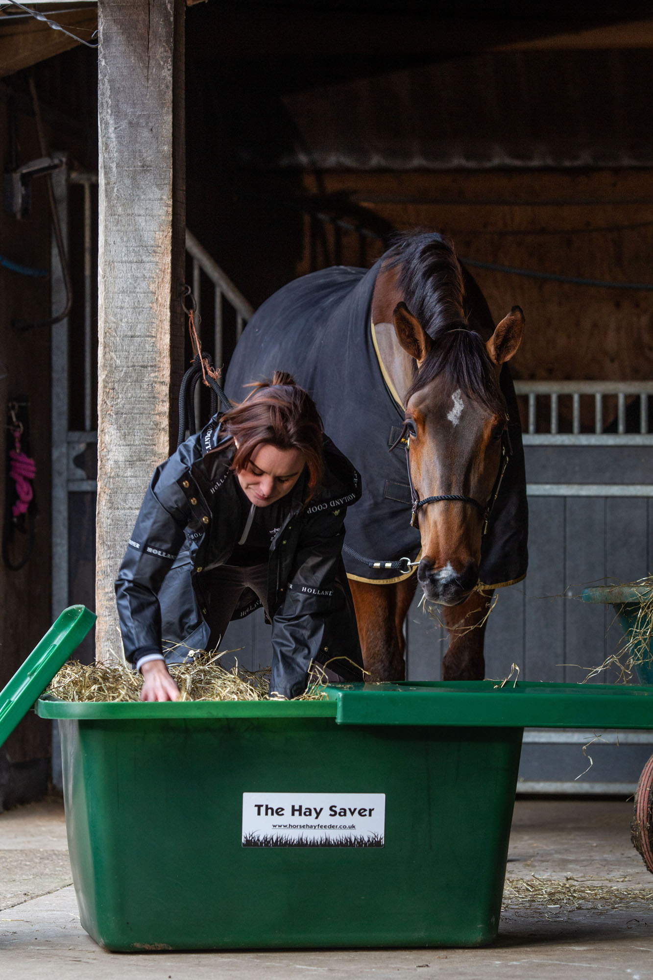Destiné à nourrir un à deux chevaux, le râtelier Hay-Saver offre une capacité de stockage de 12kg, soit un petit ballot carré de foin. Conçu en plastique de qualité alimentaire, traité contre les UV et ne craignant pas le gel, le Hay-Saver permet aux chevaux et poneys de s'alimenter tête vers le bas sans abîmer les gencives, les lèvres et les dents. Idéal pour les chevaux au paddock ou en écurie active, ce râtelier est d’emblée coiffé d’une grille pour ralentir l’ingestion de foin et empêcher le cheval d’y plonger son nez, au risque d’inhaler les poussières fourragères. En option, une grille filet à foin effet slow-feeding est disponible. « Présent sur le marché français depuis un an et demi, le Hay-Saver convient très bien aux propriétaires soucieux d’avoir un râtelier rapide à remplir, sécuritaire et facilement manipulable », souligne Sandrine Lacomme, présidente d’À Cheval, la marque équipementière normande qui propose une très large gamme de produits pour l’équipement de l’écurie, de la carrière, et des prairies. « En option, un robinet placé à 7cm du sol permet de vidanger en toute simplicité le Hay-Saver, un point très recherché pour les propriétaires qui veulent tremper leur foin avant distribution. Ceux qui veulent le purifier (supprimer poussières et agents pathogènes, ndlr) peuvent se tourner vers un purificateur de foin de type Haygain ».