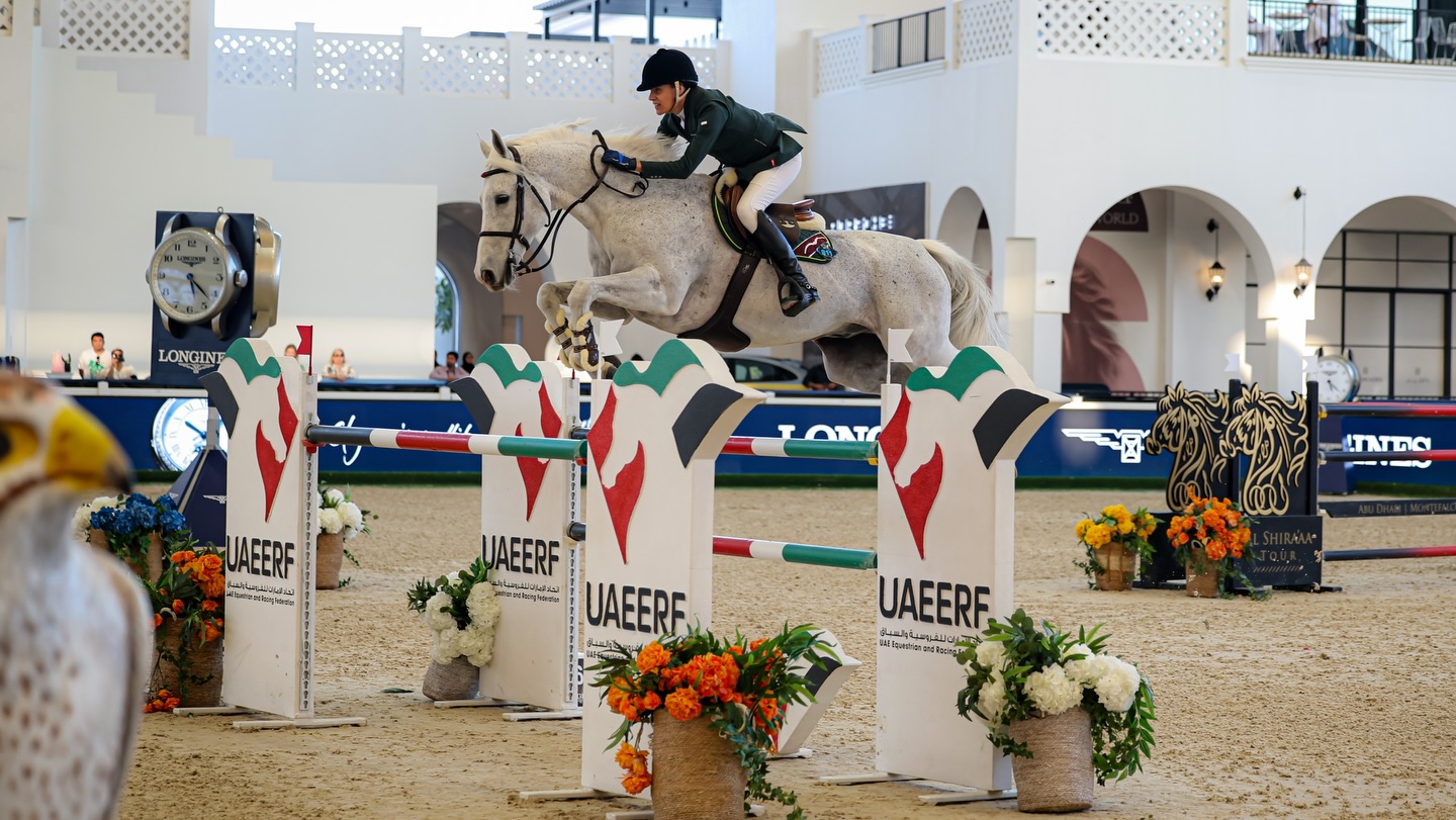 Photo à la Une : Luciana Diniz et Vertigo du Désert ont dominé le CSIO 5* d’Abou Dabi de la tête et des épaules et se sont imposés dans le Grand Prix de l’événement. © Nour Al Masri / UAEERF