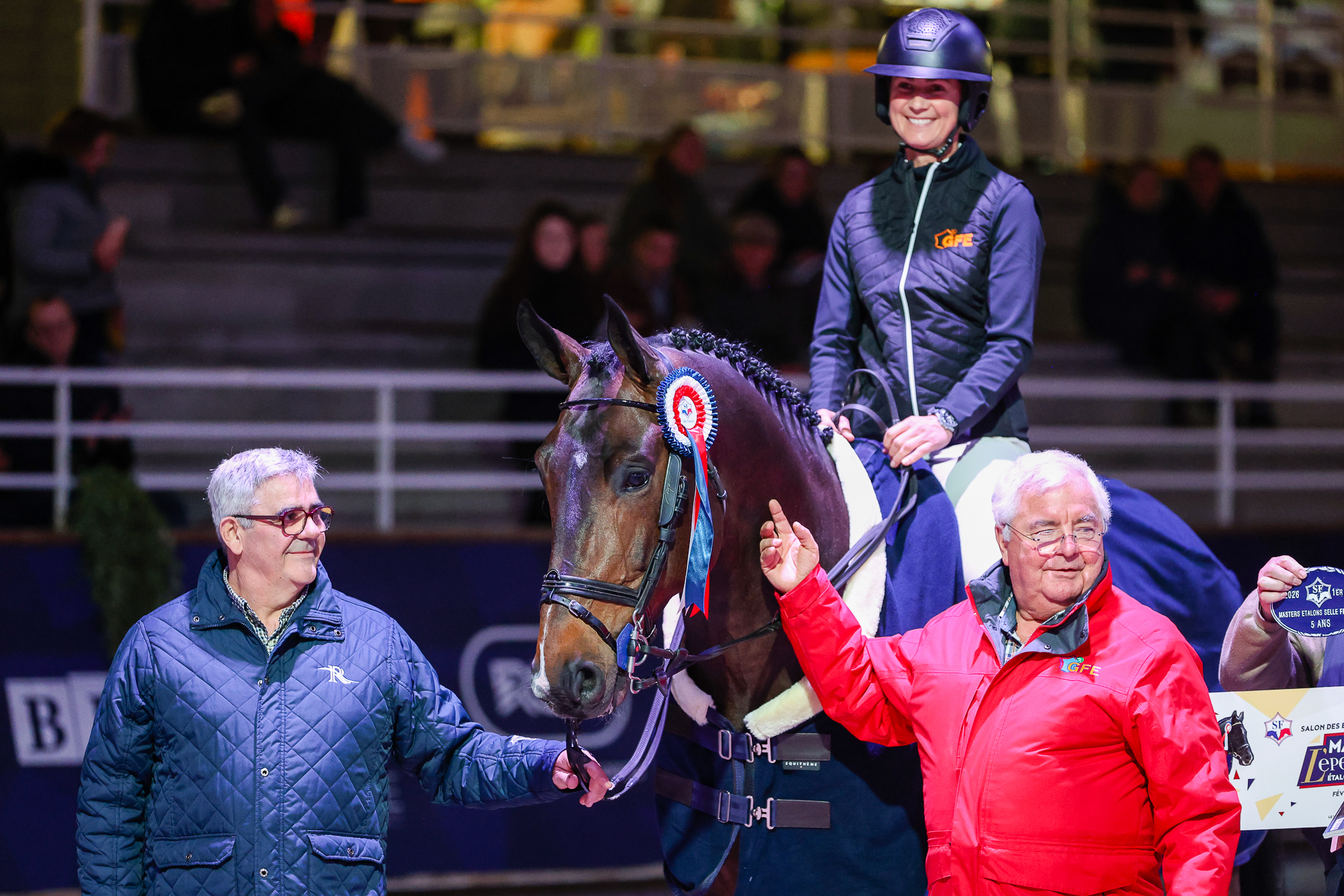 Dans cette épreuve de démonstration, où les notes se sont une nouvelle fois montrées plutôt homogènes et encourageantes pour les débuts sous les feux des projecteurs de ces très jeunes pépites, Mojito de Talma a supplanté l’athlétique et moderne Marioupol BRL*GFE. Issu du croisement entre Stakkatol et la géniale Rubelia d’Axelle Lagoubie, ISO 165 en 2018 et titulaire de plus de 200.000 € de gains, le gris, frère utérin de Black’n Roll, vice-champion d’Europe par équipe aux Européens Jeune Cavalier de Peelbergen en 2024 avec le Français Baptiste Eichner, a montré de bonnes aptitudes sportives sous la selle d’Hugo Paris.