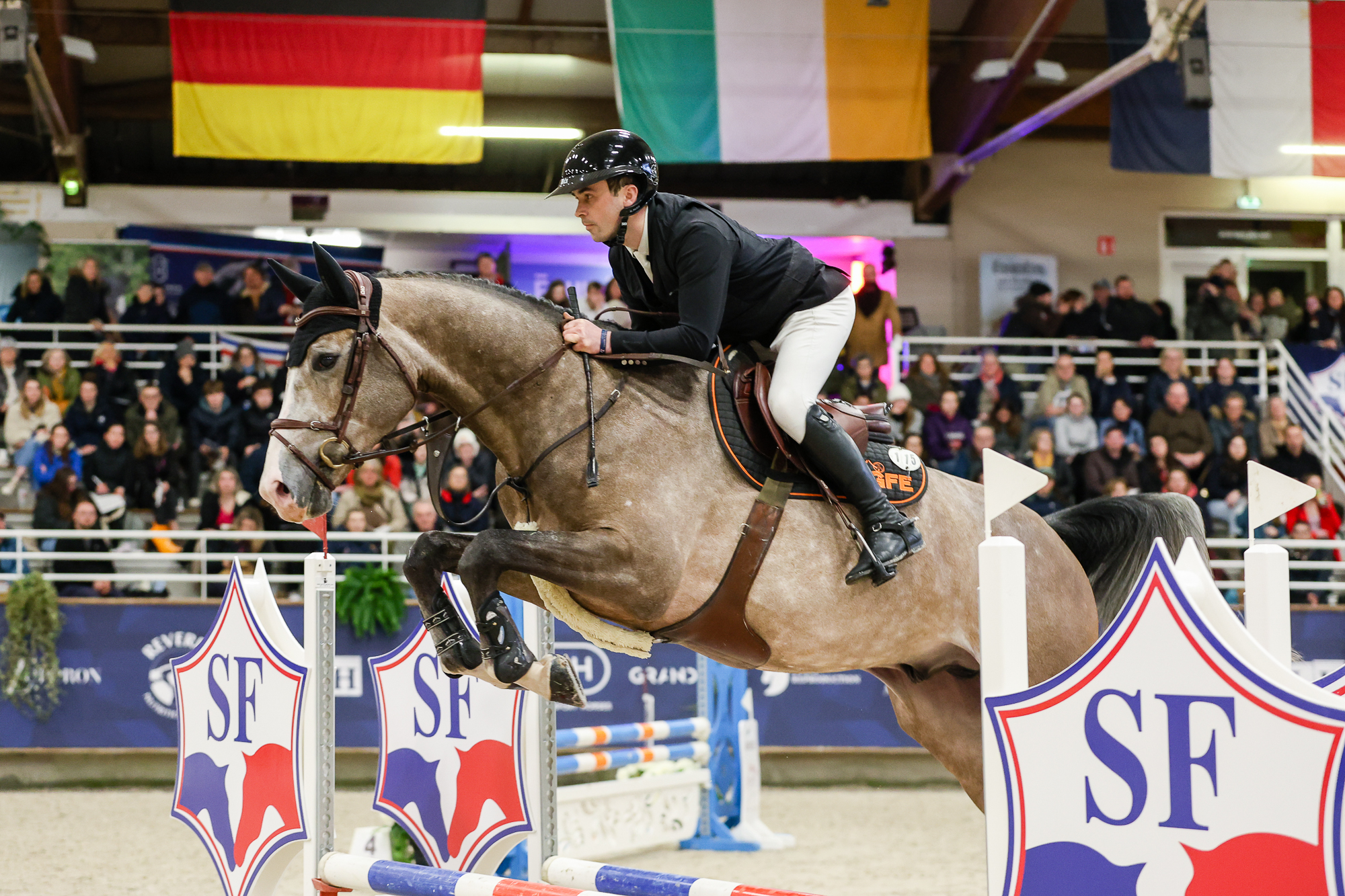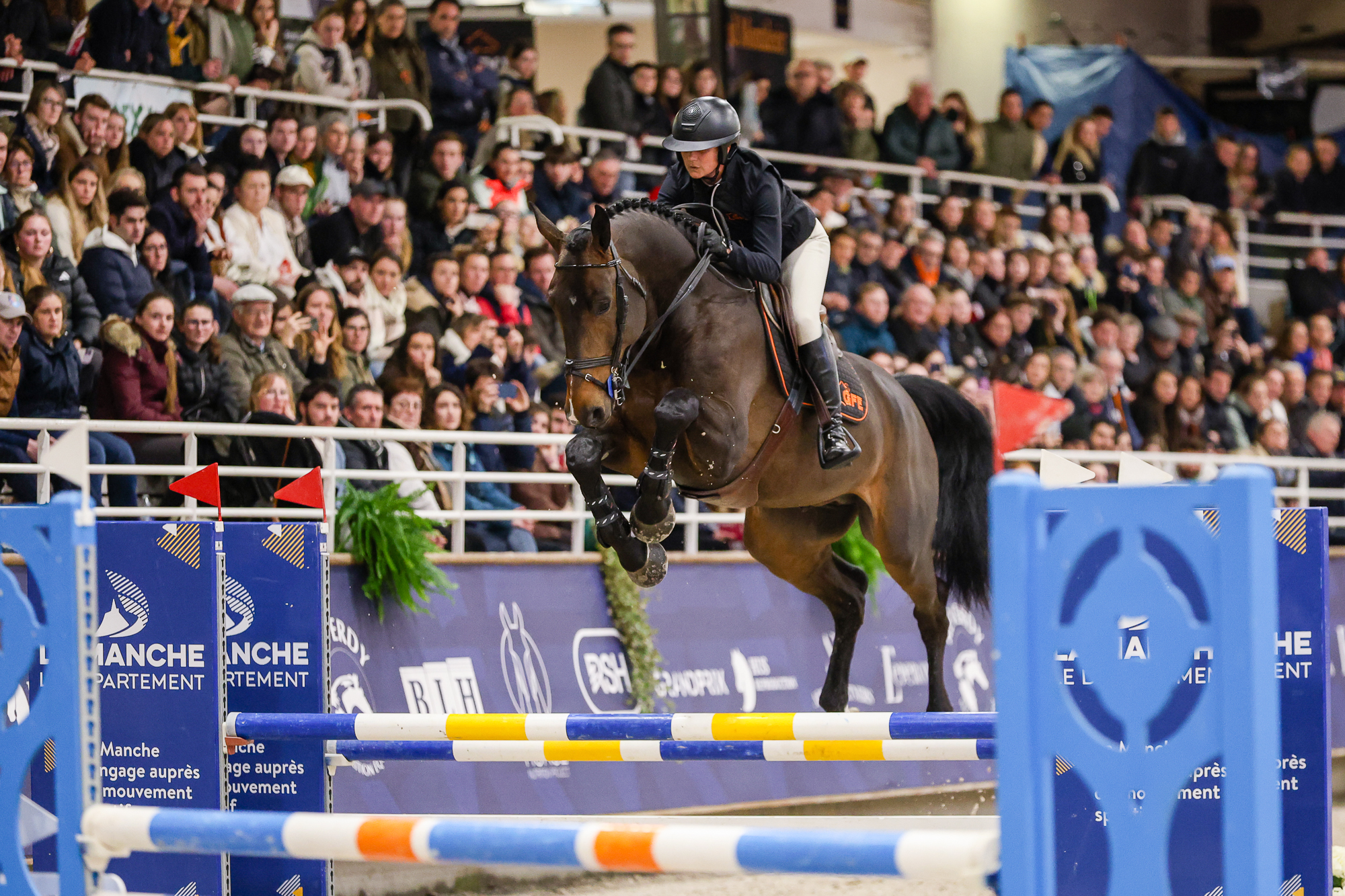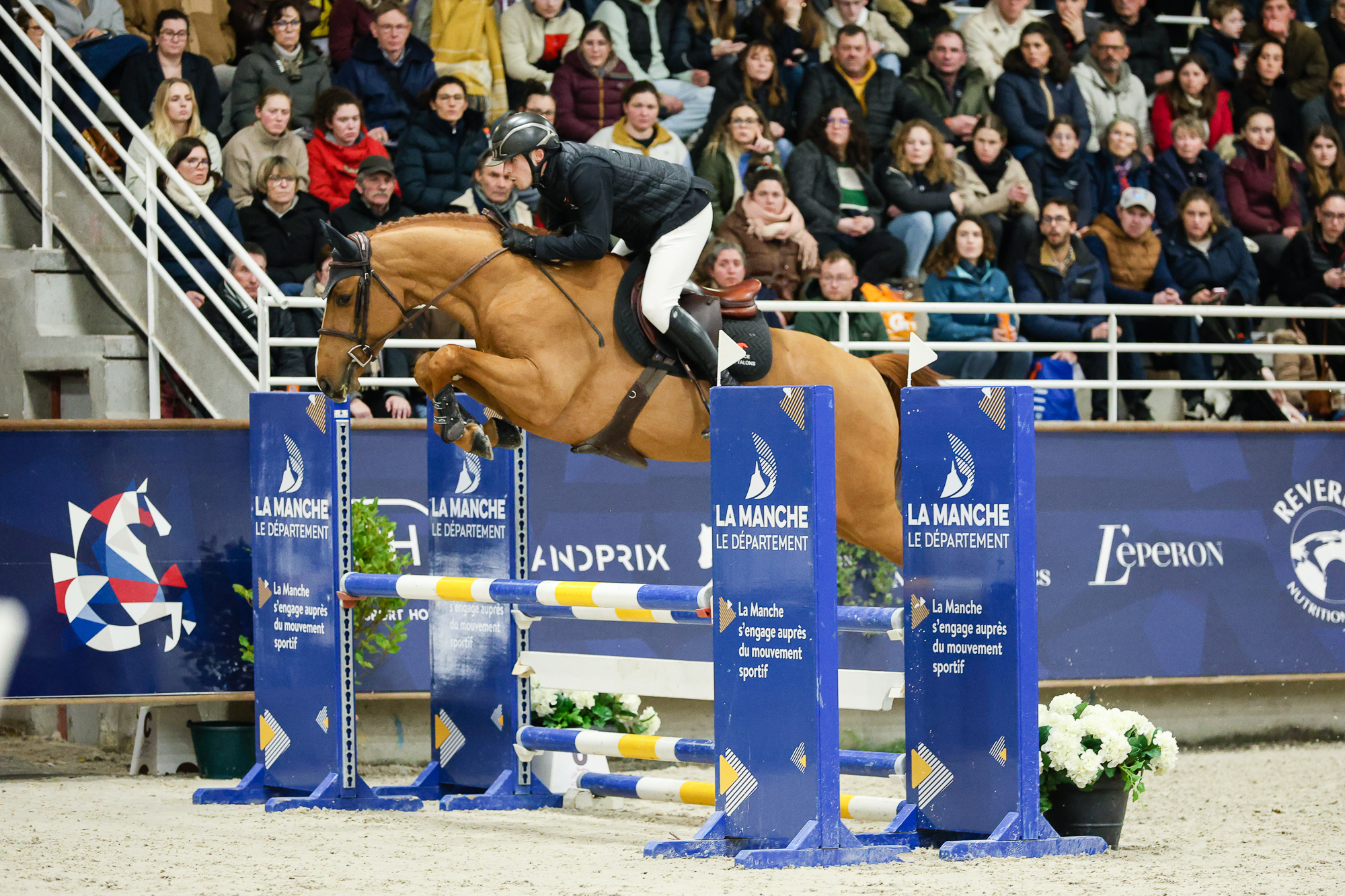 Venue spécialement de Gassin pour participer au Masters des étalons Selle Français de Saint-Lô, vendredi 20 février, Pénélope Leprevost est passée par toutes les émotions. Si la Normande a connu quelques déboires, vite corrigés, avec Latino Gos*GFE, qui ne manque pas de talent mais n’avait pas de repères avec son amazone d’un soir, elle a surtout enflammé le pôle hippique aux rênes du surpuissant La Tour du Rouet*GFE. “J’ai un objectif avec lui : le monter lors du salon des étalons de Saint-Lô ! Cela me laisse très peu de temps pour former un couple avec lui, mais je vais faire de mon mieux”, confiait-elle il y a quelques jours du côté de Bordeaux. Contrat plus que rempli, donc, pour ce fils de Dollar du Rouet et petit-fils de Zandor qui ne laisse personne indifférent. Doté de moyens phénoménaux, le bai brun a décroché la première place de sa classe d’âge, comme il l’avait déjà fait l’an dernier avec Léo Nerzic. À cinq ans, celui qui est né chez la famille Fardin a subjugué le public, qui l’a largement applaudi, mais aussi les juges, qui lui ont attribué la meilleure moyenne de la soirée, bien aidée par un… 20/20 pour sa force et ses moyens. Une note aussi rare que méritée tant La Tour du Rouet semble capable de tout sauter. L’imaginer évoluer au plus haut niveau sur une immense piste en herbe, de la trempe de celle de Calgary ou d’Aix-la-Chapelle, dans quelques années semble couler de source.