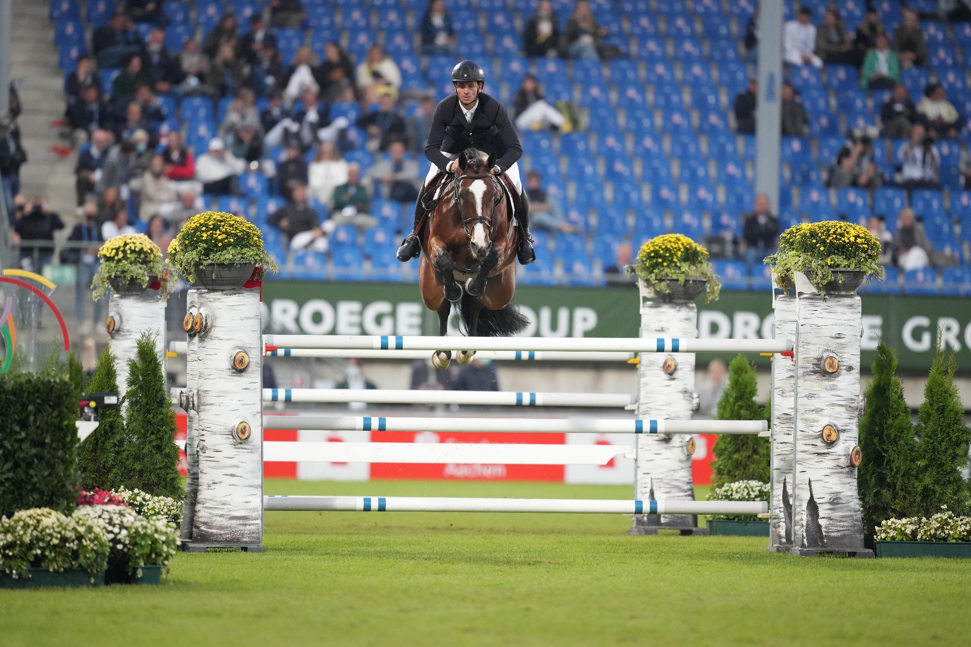 Narcos vd Smiedshoeve, qui partage la même origine maternelle que le vaillant Naxcel V de Gerfried Puck, avait signé des débuts prometteurs à Aix-la-Chapelle en 2021 sous la selle de Kendra Claricia Brinkop. © Sportfot