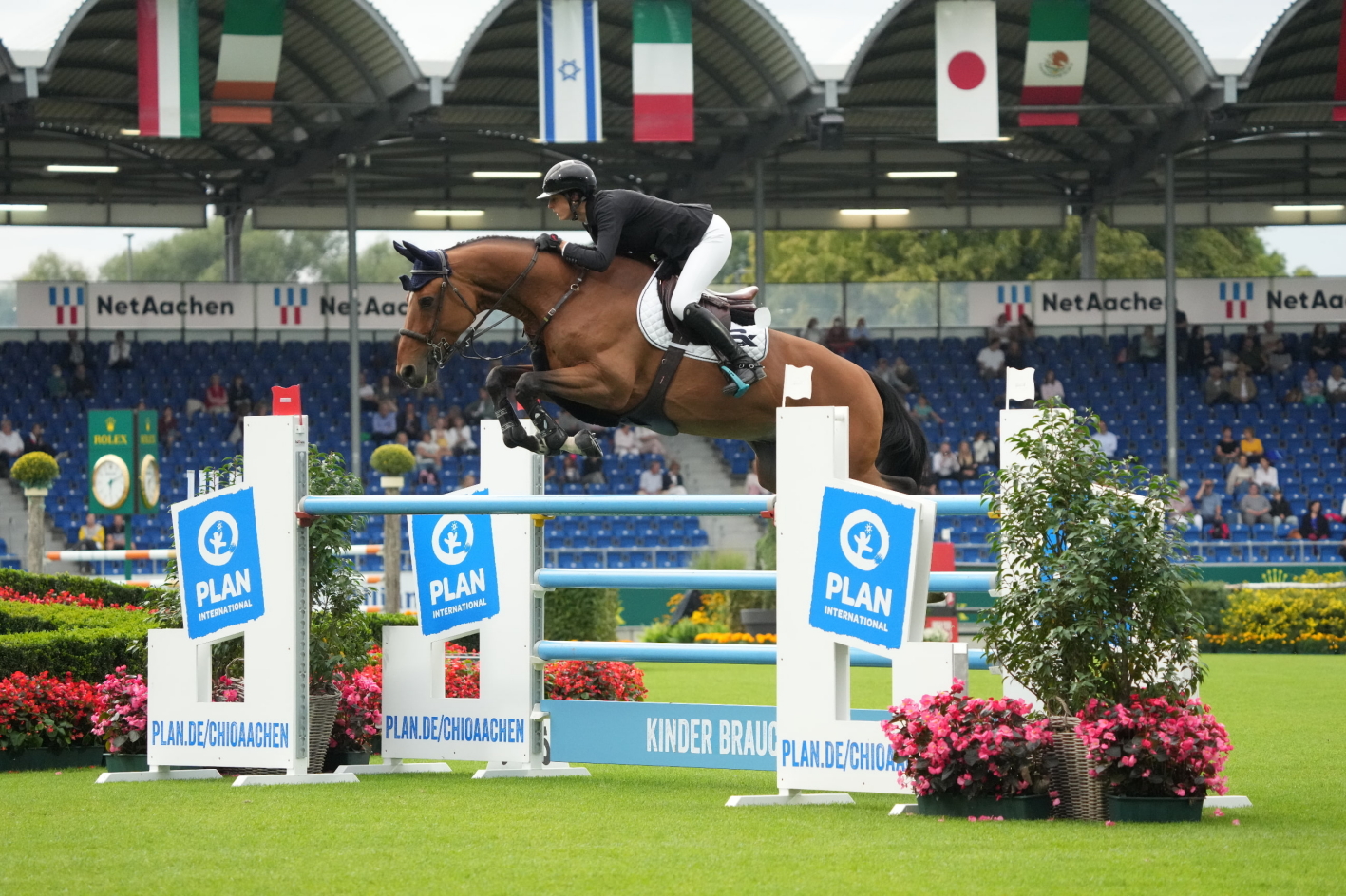 Cinquième à sept ans, puis lauréate de cette même épreuve un an plus tard, Entre Nous, alias Hello Vittoria, avait montré un bon potentiel à Aix-la-Chapelle. Finalement, Scott Brash s’est séparé de cette généreuse partenaire l’an dernier, au profit de Georgia Tame. Particulièrement à l’aise à 1,45m voire 1,50m, la très démonstrative fille de Kannan ne retrouvera pas Aix-la-Chapelle cette année. En revanche, rien n’interdit de revoir Nice van’t Zorgvliet, double sans-faute et neuvième en 2021 avec Christian Kukuk. Si l’alezane devra faire face à une concurrence de taille, autant au sein du piquet de sa cavalière, Nadja Peter Steiner, qui monte aussi la très régulière et fiable Mila 64, et de l’équipe suisse, elle reste une option envisageable. Si elle semble plus compétitive sur des épreuves de vitesse, la fille d’Emerald van’t Ruytershof a toutefois obtenu des classements jusqu’en Grand Prix 5*, comme à Doha en 2023 ou à New York l’an dernier.