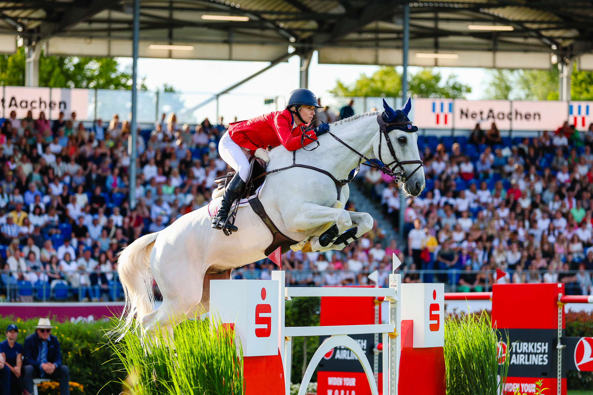 Je suis extrêmement chanceuse de pouvoir compter sur le soutien de McLain Ward. C’est un mentor pour moi depuis de nombreuses années. Il partage avec moi son système et sa méthodologie dans l’élaboration d’un planning de compétition. La clef est de trouver le juste milieu. Il faut à la fois concourir pour rester compétitif, mais aussi cibler les moments phares lors desquels on souhaite atteindre un pic de forme. Si on ne se focalise que sur ces moments-là, en oubliant la compétition le reste du temps et en ne transformant pas l’essai au bon moment, c’est une forme de gâchis. Il faut trouver le bon équilibre, celui qui permet de rester dans le coup sans se brûler les ailes, tout en gardant des épreuves spécifiques en ligne de mire pour chaque cheval. Il faut également connaître les points forts de ses montures. Par exemple, Argan de Béliard excelle dans les formats de Coupes des nations. Je compte beaucoup sur lui pour représenter l’équipe américaine. Il n’est pas le plus rapide au barrage. Lorsque j’ai commencé à le monter, j’ai essayé d’améliorer sa vitesse, et il a beaucoup progressé, mais il n’est pas le plus redoutable dans cet exercice. Pour cette raison, je le préserve pour les concours les plus importants de l’année, où il y a, en général, peu de sans-faute. La seule fois où Argan n’a pas réalisé un double sans-faute cette année est aussi la seule fois où l’équipe américaine ne s’est pas qualifiée pour la seconde manche (lors du CSIO 5* de La Baule, ndlr) ! Il n’a même pas eu la chance d’essayer de le faire (alors que le gris avait signé un premier tour à un point, ndlr) ! C’est assez incroyable. Mais je ne peux pas lui demander de sauter chaque semaine. On parle souvent de chiffres et de pourcentages dans notre sport ; à long terme, on ne peut pas s’en tirer en concourant chaque week-end. Il faut tirer le meilleur de chaque opportunité qui se présente à nous. C’est un défi pour moi, car je crains toujours de prendre du retard. McLain m’a beaucoup aidée à ne pas faire la course aux concours et aux points comptant pour le classement mondial et à plutôt m’attacher à sélectionner les événements qui comptent. Par exemple, Argan est beaucoup plus à son affaire sur de grandes pistes, comme Calgary ou Aix-la-Chapelle. Cela fait une grande différence. Fasther, lui, est davantage compétitif. J’essaye de l’économiser pour les Grands Prix les plus importants. Il serait aussi un merveilleux cheval de Coupe des nations, mais à ce stade de sa carrière (l’alezan fête son seizième anniversaire en 2026, ndlr), je ne peux pas enchaîner une Coupe des nations et un Grand Prix le même week-end avec lui.