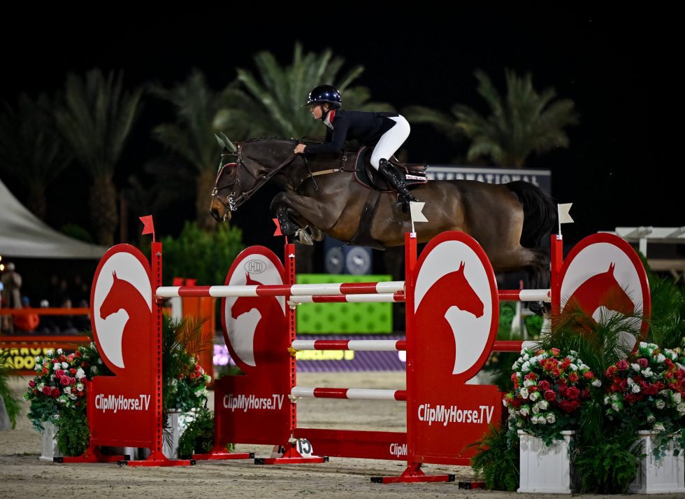 Laura Kraut pense le plus grand bien de sa bondissante Bisquetta ! © Megan Giese Media / Desert International Horse Park