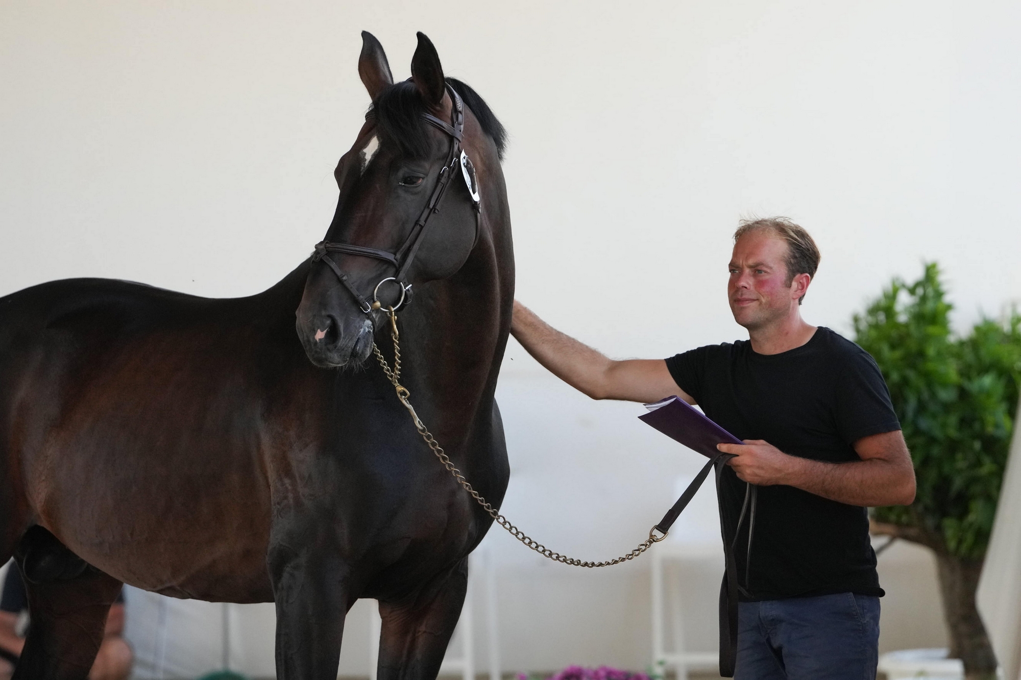 Photo à la Une : Brice Brassart pose aux côtés de Catchar Mail et son propriétaire et éleveur, Bernard Le Courtois, lors du salon des étalons de Saint-Lô, en février 2026. © Jean-Louis Perrier