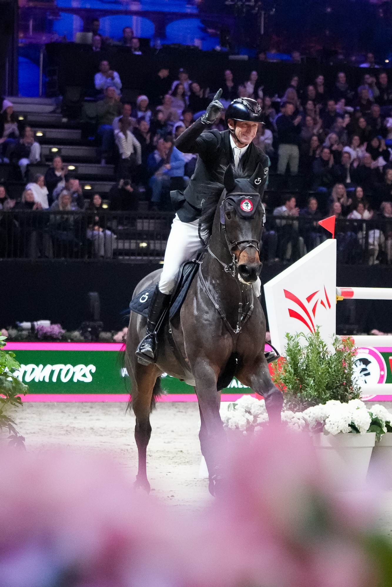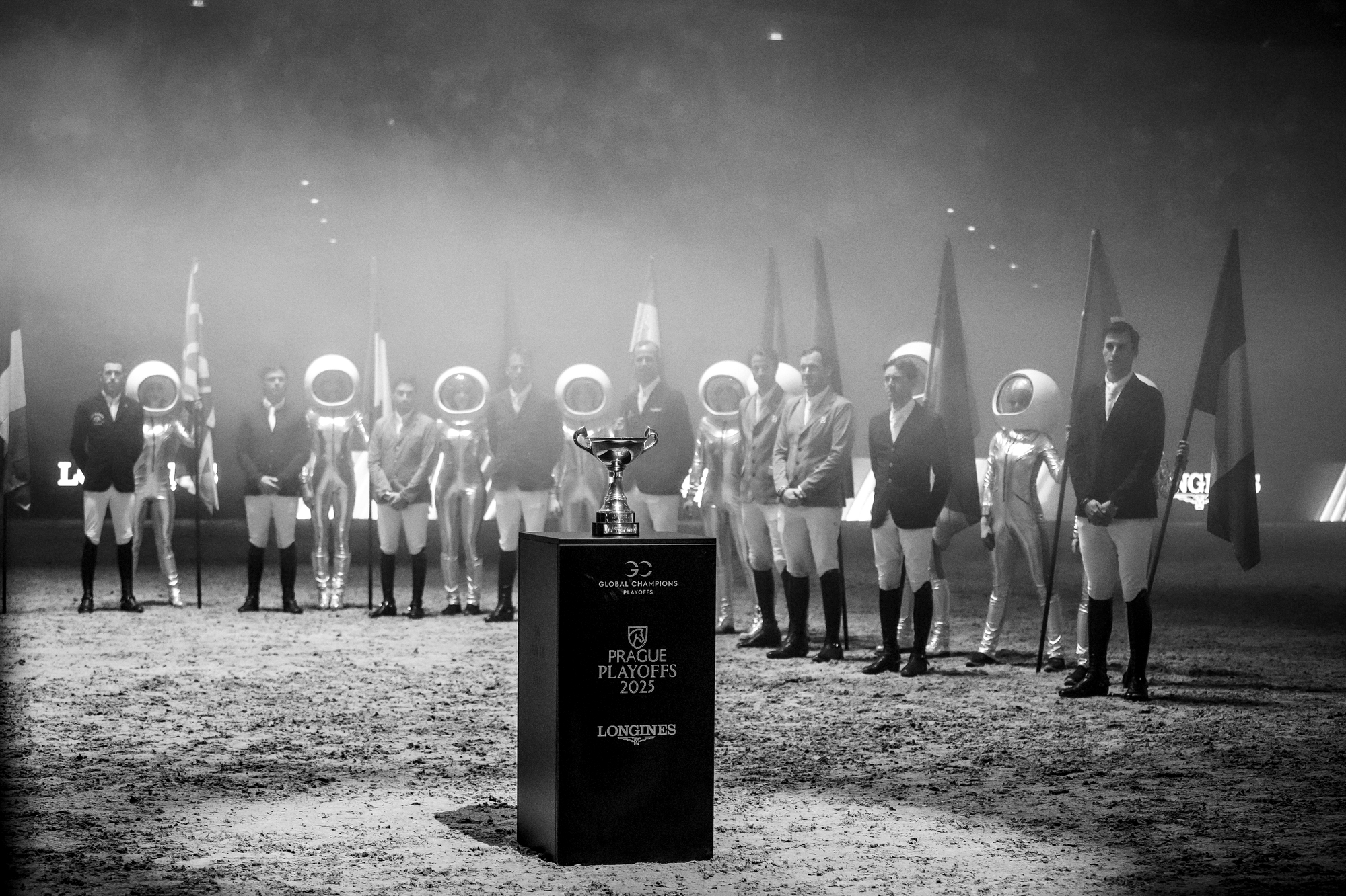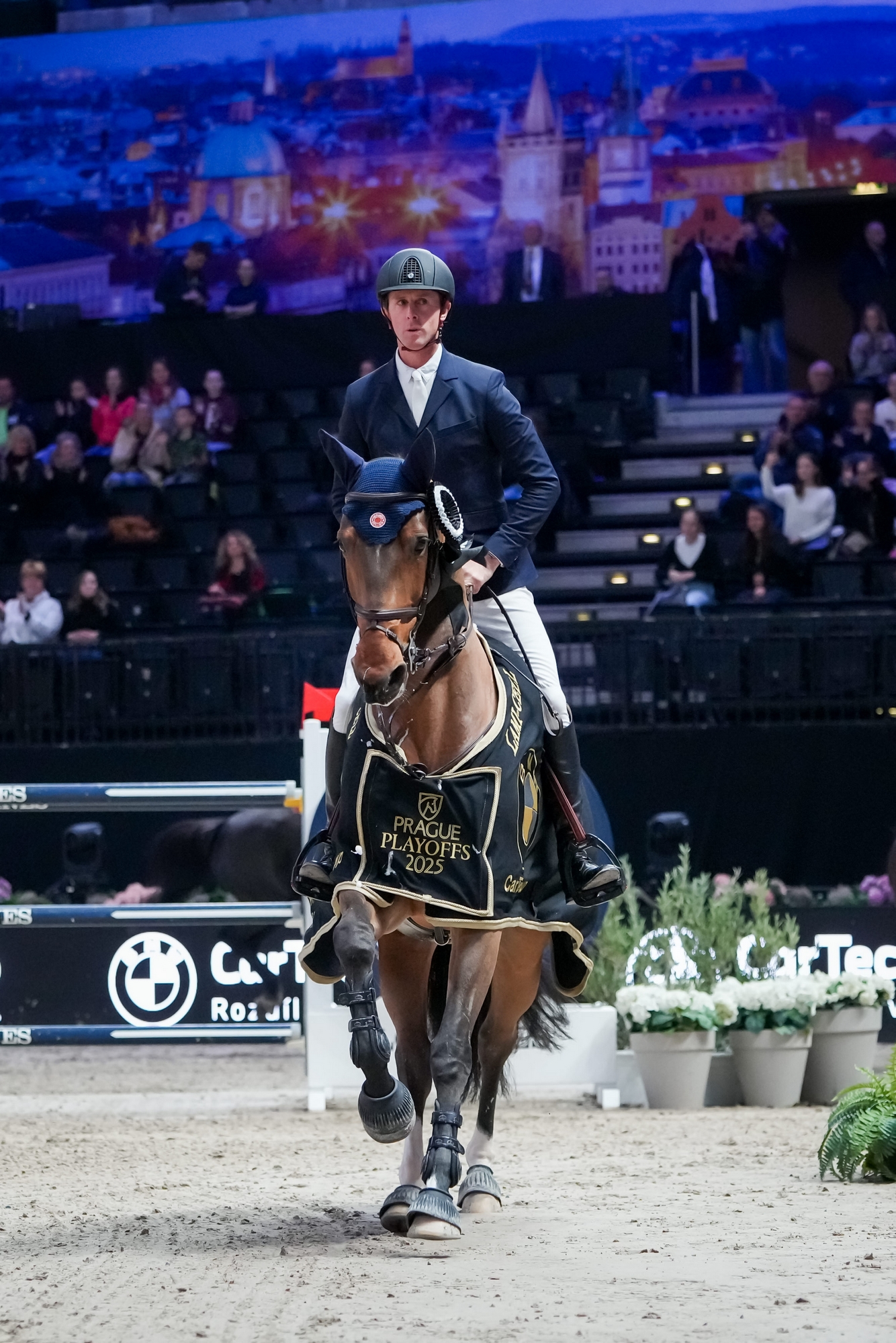 Point d’orgue des circuits Global Champions, les Play Offs de Prague ont réservé leur lot de surprise aux nombreux spectateurs venus garnir les rangs de l’ultra moderne O2 Arena. Après un passage par Riyad l’an dernier, l’événement a retrouvé la République Tchèque. Dimanche 23 novembre, la finale de la Global Champions League, épreuve par équipes extrêmement bien dotée, a sacré les Gladiateurs de Rome. Parfaitement menés par Peder Fredricson et Alcapone des Carmille, en forme olympique depuis la fin de l’été, l’escouade s’est imposée. Le hongre de quinze ans a porté Esteban de Hus et QH*Alfons*Santo Antonio, monture de l’Italien Emanuele Gaudiano et du Brésilien Yuri Mansur, en signant l’un des trois seuls doubles zéro de l’après-midi. De quoi donner le sourire à la joyeuse troupe une fois la coupe en mains ! © Sportfot