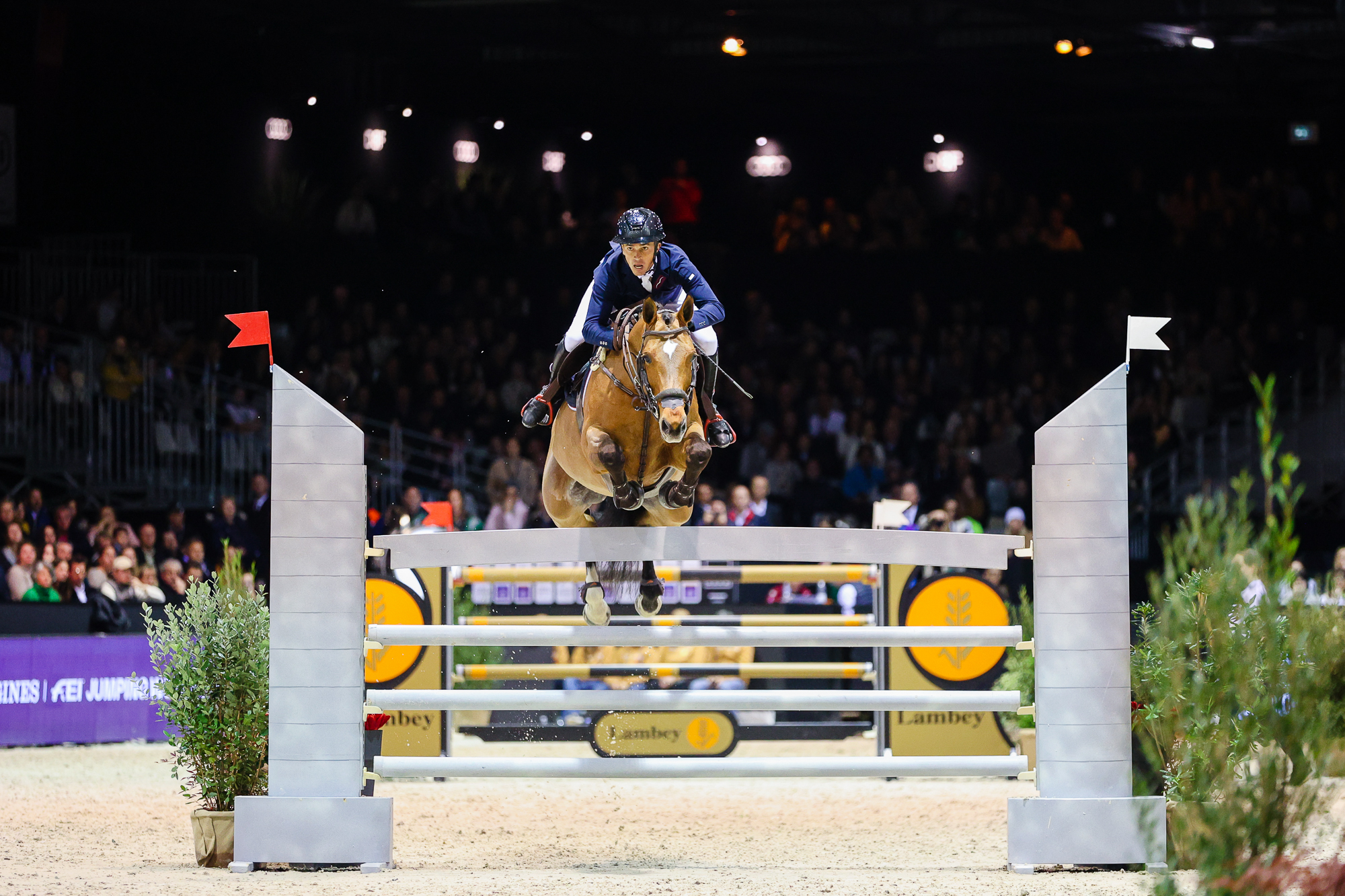 Après avoir sauté son premier Grand Prix Coupe du monde en février à Bordeaux, Vendome d'Ick prend sa retraite sportive. © Mélina Massias