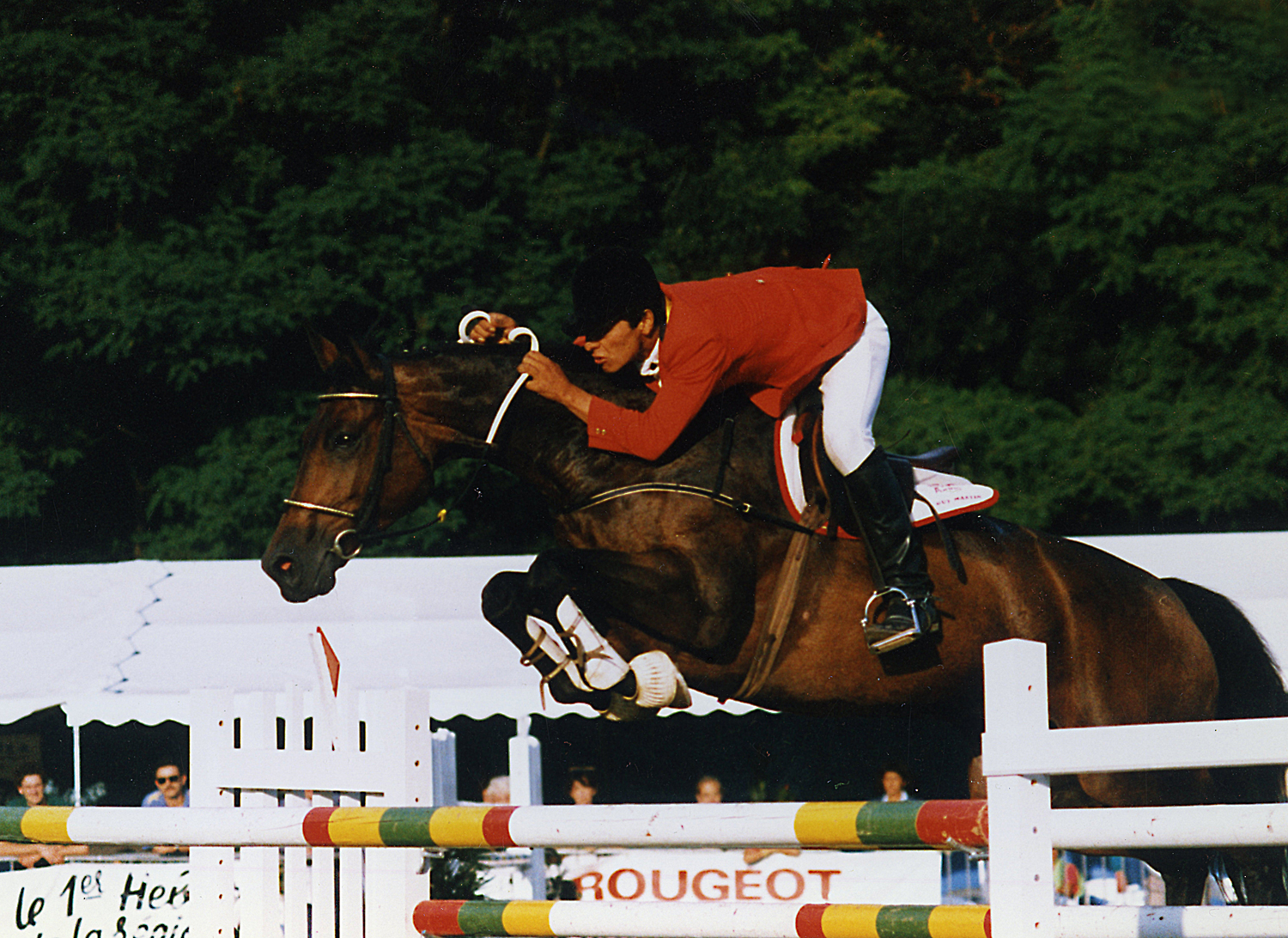 Ouragan de Baussy, arrière-grand-père d’Easy Up, a fait une bonne carrière en compétition (ISO 154) avec Guy Martin et le Colombien Carlos Lopez Lizarazo. Lors de ses premières années de compétition en France, ce dernier s’est surtout démarqué avec une autre pensionnaire de l’écurie Guy Martin : Maverdi du Béar (Gaverdi), la troisième mère d’Easy Up. “J’ai acheté Maverdi du Béar à son éleveur, Roger Riche, lorsqu’elle avait six ans. J’ai dû la monter une ou deux fois en concours, mais je l’ai ensuite confiée à Carlos Lopez, qui travaillait pour moi, comme Hubert Bourdy”, se souvient Guy Martin. “Carlos a fait de très beaux concours, comme le CSIO de Rome et les Jeux Panaméricains à Minneapolis où il a fini dixième.” Cette baie, de taille moyenne mais bien charpentée, était une fille de Gaverdi, un Anglo-Arabe de Complément par l’excellent Pur-Sang du Haras national de Cluny, Verdi (Maurepas). Verdi est le père de nombreux performers en courses d’obstacles, mais aussi en sport, à l’instar du complétiste Ut Majeur II, crédité d’un ICC 175 et vu aux Jeux olympiques de Munich, ou l’étalon de la famille Martinot, If de Merzé, ISO 147 et notamment à l’origine du double médaillé d’argent des Jeux équestres mondiaux de Rome en 1998, Thor des Chaines, associé à Thierry Pomel. La mère de Gaverdi, Altes Grandrieux, née du croisement entre le grand sire Furioso et une jument Anglo-Arabe, a eu trois produits indicés à plus de 130. Si Gaverdi n’a pas été testé en compétition, pratique peu usuelle à l’époque au sein des Haras nationaux, il a produit plusieurs excellents compétiteurs malgré un harem assez hétéroclite, avec des juments sans grande origine, comme la mère de Lichen V ISO 176, un des premiers partenaires de Grands Prix Coupe du monde d’Hubert Bourdy, ou AQPS, comme celle de Lord du Miral, ISO 176, médaillé de bronze par équipe aux championnats d’Europe Jeunes Cavaliers en 1986 avec Jean-Charles Gayat.