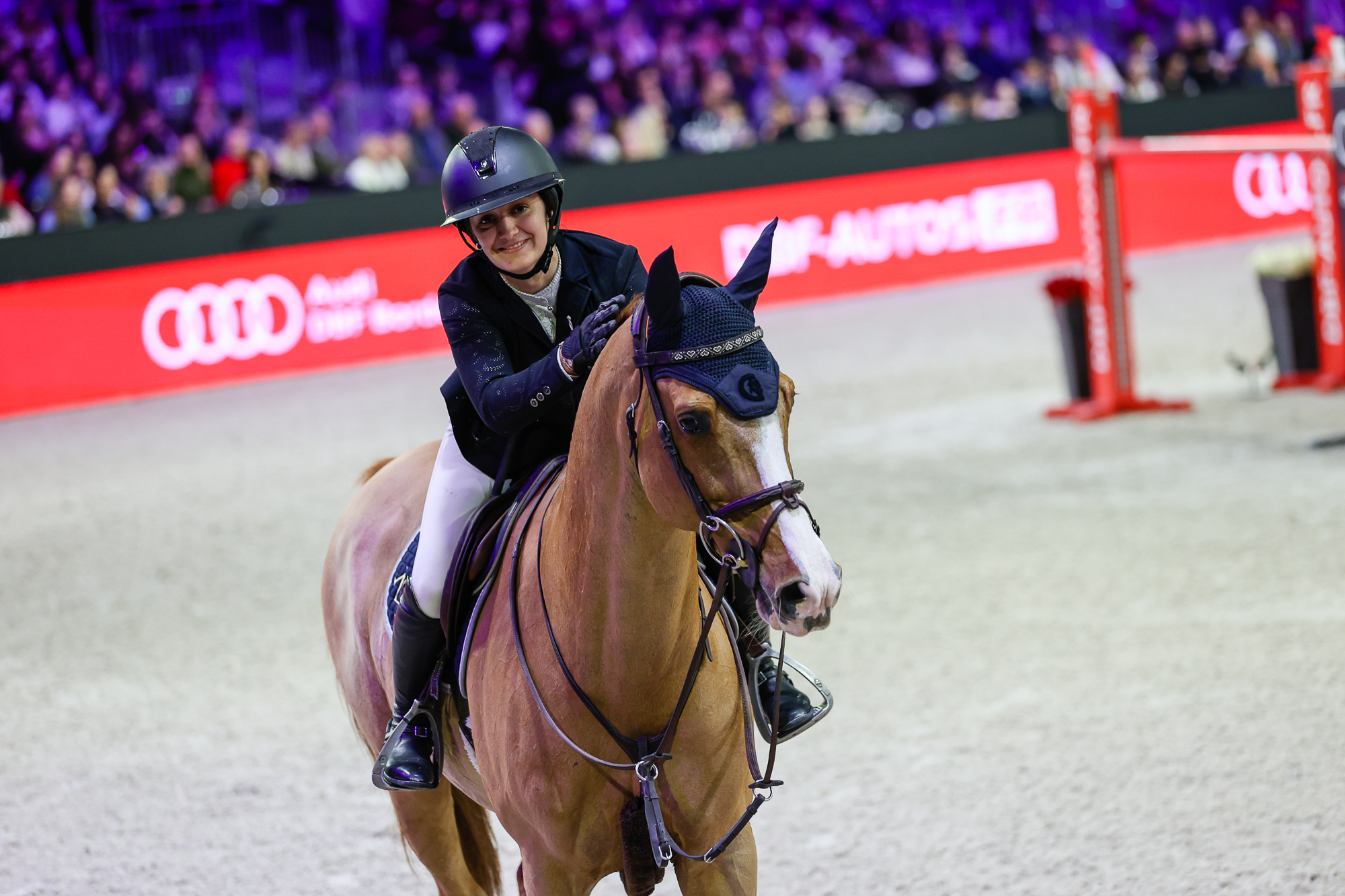 Notamment soutenue par le haras de Clarbec et la Laiterie de Montaigu, Camille Condé-Ferreira a fait ses premiers pas en CSI 5* l’an dernier, d’abord à Fontainebleau puis à Lyon. “Le niveau 5* est différent. Le jour où on nous en ouvre les portes, on a envie de vraiment bien faire. J’ai participé à mon premier CSI 5* à Fontainebleau. J’avais l’impression de ne pas avoir totalement ma place, alors que ma jument, Égérie du Val du Geer (Toulon x Kashmir van’t Schuttershof), était complètement au niveau. Malgré tout, on a toujours le sentiment que notre place est enviée et qu’on ne la mérite pas forcément. Cela met une pression supplémentaire”, avoue la cavalière, qui semble très bien gérer cet aspect. “Après Fontainebleau, j’ai eu l’occasion de participer au CSI 5*-W de Lyon, en fin d’année dernière. Une nouvelle fois, j’avais vraiment envie de montrer que je méritais ma place. Bassano a très bien répondu et s’est classé dans une épreuve à 1,50m le deuxième jour. À Bordeaux, j’avais moins de pression car ma venue n’était pas prévue ni attendue. Je voulais faire une belle entrée dans le concours avec l’épreuve à 1,50m, en sachant que le Grand Prix dominical m’attendait. Cela a été le cas, puisque Bassano a à nouveau obtenu un classement vendredi. Puis le Grand Prix de dimanche a été la cerise sur le gâteau !”