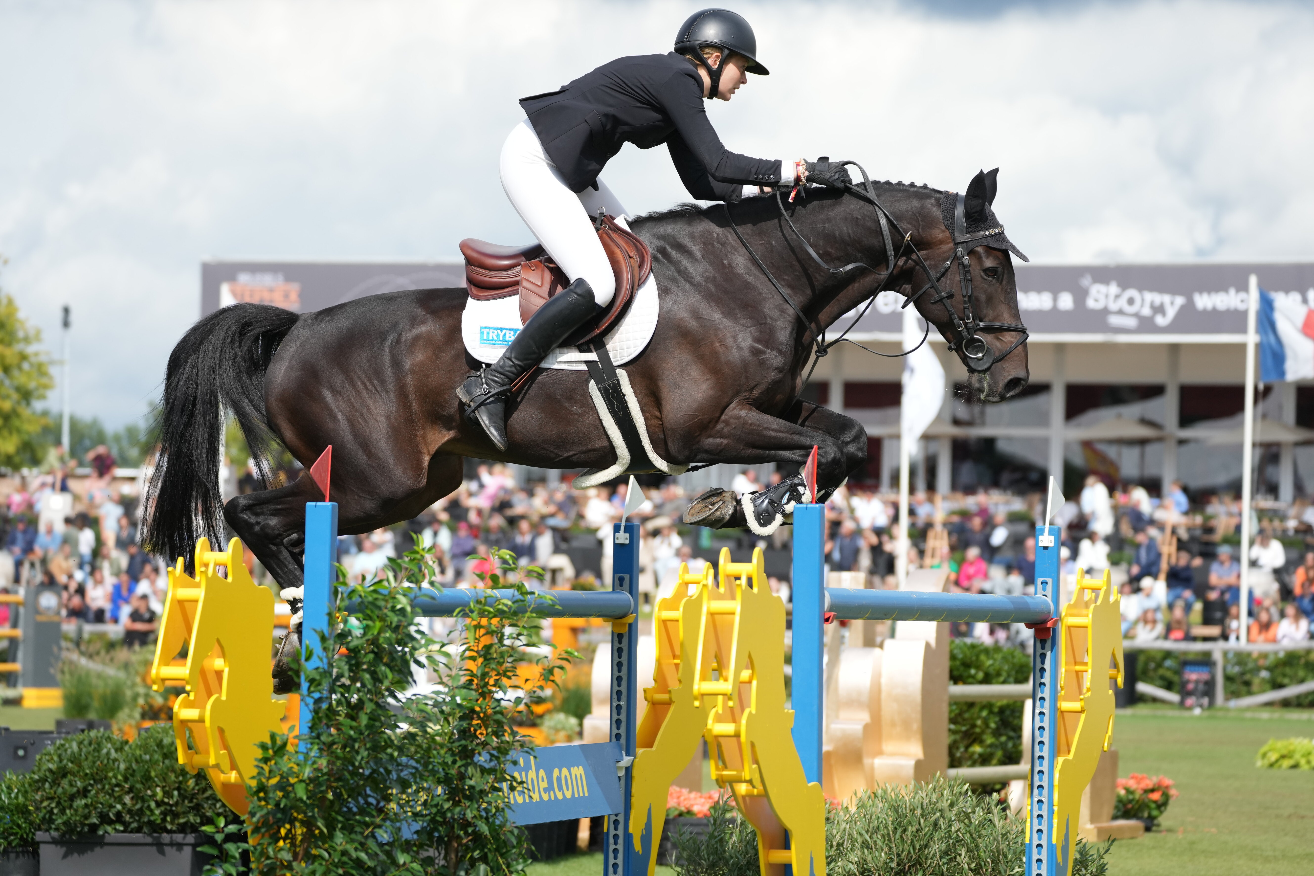 Avec Rosa du Coisel, Lara Tryba a obtenu de beaux résultats, comme ici au CSIO de Fontainebleau, et porté la veste de l'équipe de France jusqu'aux championnats d'Europe de Millstreet en Junior. Disparue en 2023, Rosa du Coisel a laissé une pouliche à l'élevage du Lerchenberg, baptisée Mimosa Lerchenberg (Bush vd Heffinck) et née en 2022. © GRANDPRIX.tv