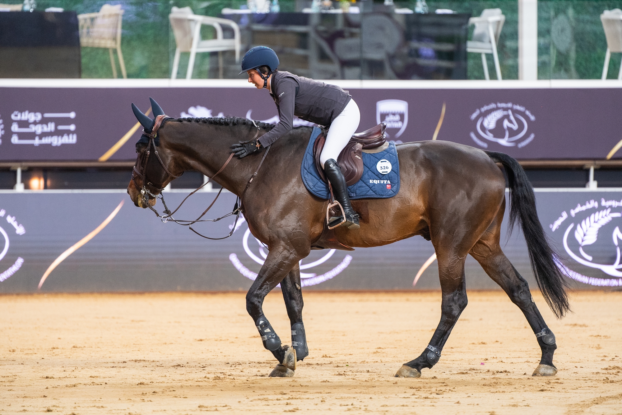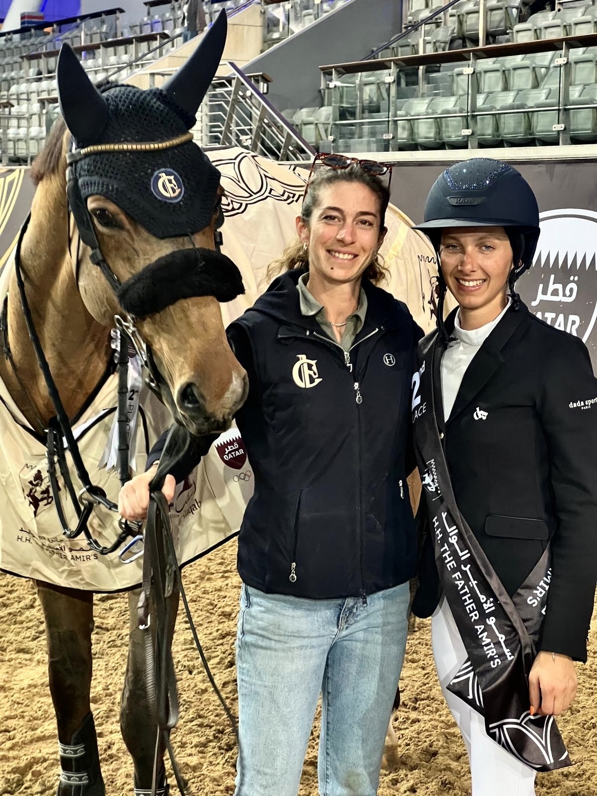Dernier fils de la matrone Fragance de Chalus, Qoup de Cœur de Muze se plaît à Doha, tout comme sa cavalière ! © Lukasz Kowalski / Doha Equestrian Tour