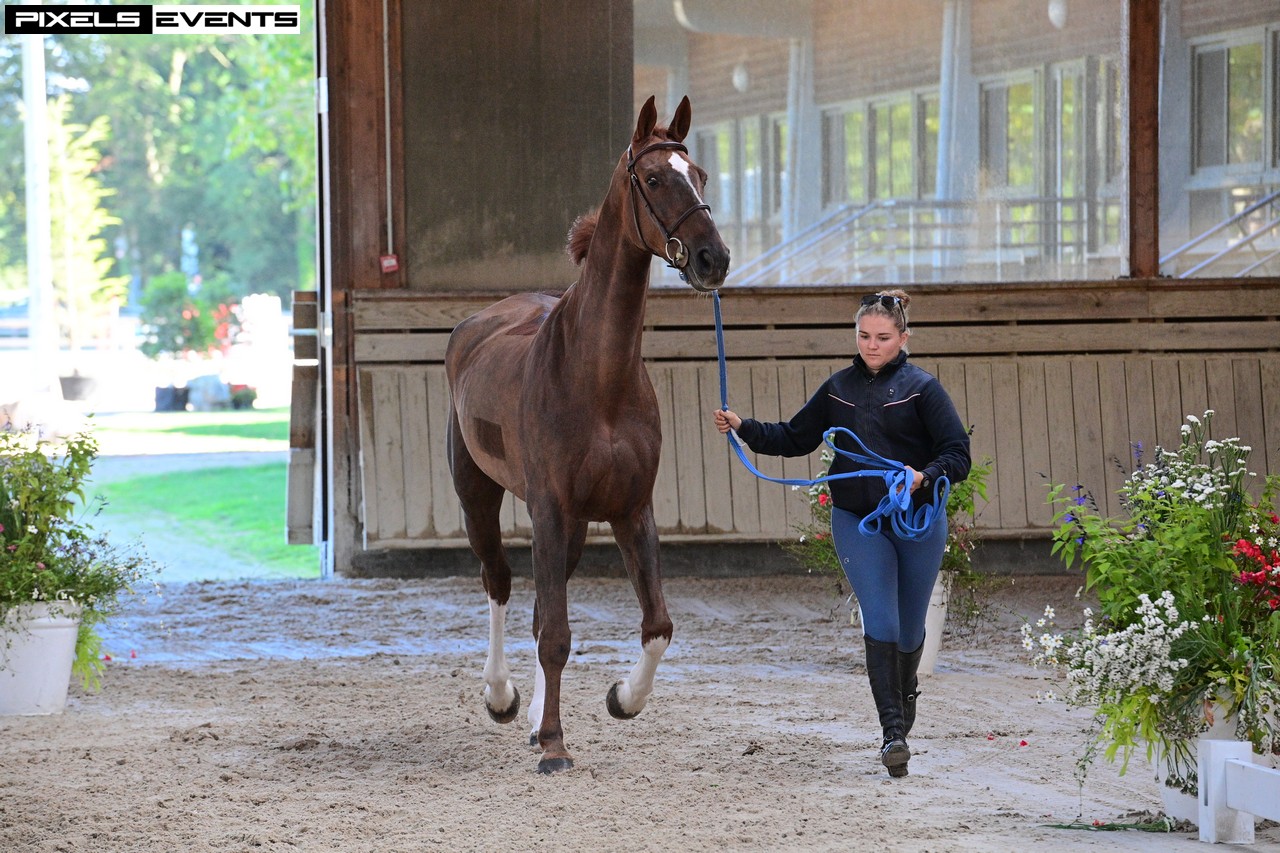 “Qelverdie avait une robe avec beaucoup de blanc, en tête et sur les membres, et des sortes de pastilles de poils blancs sur le corps, un peu comme une robe léopard mais à l’envers. On l’appelait ‘Madame Petit Pois’ !”, sourit son ancien cavalier. “Elle a fait une bonne carrière en compétition (en se classant jusqu’à 1,55m, pour obtenir un ISO 154 en 2013, ndlr), tout en menant de front sa carrière de reproductrice par transferts d’embryons. Je fais naître entre deux et quatre poulains par an, avec cette souche et celle d’Elina de Grandry (Qlassic Bois Margot). Je comptais beaucoup sur la lignée de Qelverdie, mais je n’ai pas de chance avec ses pouliches ! Qelverdie est morte à la fin de l’année dernière, et j’ai perdu l’une de ses filles en septembre, à la suite d’un accident au pré-débourrage. Une autre pouliche est morte après avoir été intoxiquée par le lait de sa mère porteuse… J’ai une cinq ans par All Star 5, Kelle Dame de Grandry, en laquelle je crois beaucoup pour l’avenir. Je ne l’ai pas emmenée à Fontainebleau car elle n’est pas à vendre. En début d’année, j’ai fait trois transferts avec elle, mais aucun n’a fonctionné… J’espère vraiment garder cette souche car il s’agit de la lignée maternelle de Maverdi du Béar, une jument qui était très réactive et très respectueuse.”