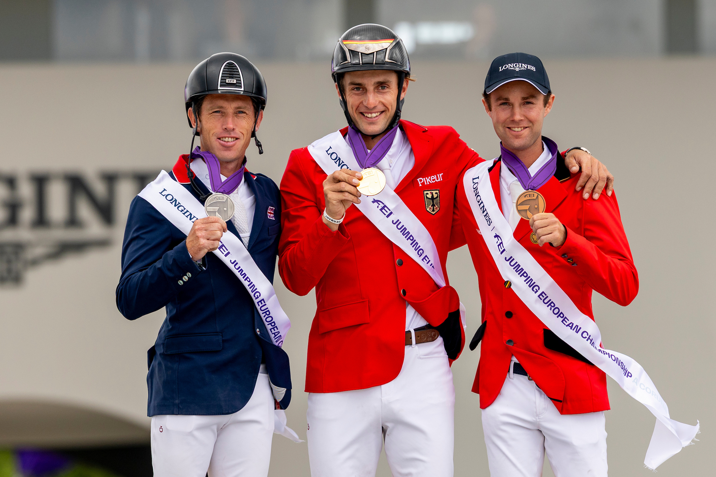 20 juillet 2025 : United Touch S, Hello*Folie de Nantuel, Ermitage Kalone. Difficile d’imaginer meilleur podium pour la finale individuelle des championnats d’Europe de La Corogne. Le rendez-vous continental a permis de mettre en lumière trois très grands chevaux, tous gagnants en Grand Prix 5* avec Richard Vogel, Scott Brash et Gilles Thomas. Bref, en Galice le sport a triomphé. © Dirk Caremans / Hippo Foto