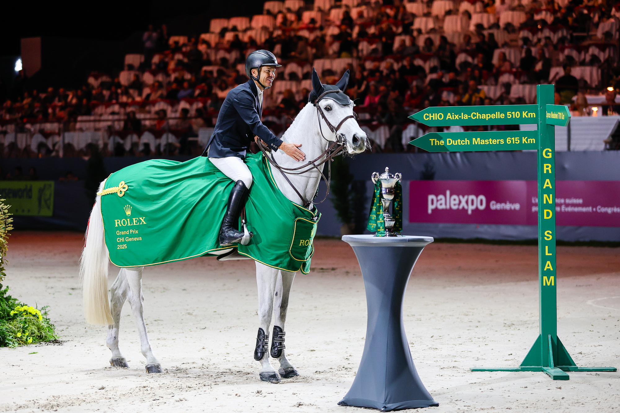 14 décembre 2025 : La cerise sur le gâteau pour Kent Farrington et Contina 47, alias Greya. La paire a conclu sa saison stratosphérique à Genève, en s’offrant son septième Grand Prix 5* de l’année. What else? Il s’agit du nouveau record de victoires pour un couple sur douze mois, qui était jusqu’alors détenu par Gazelle Ter Elzen et Kent Farrington. Numéro un mondial depuis mai, l’Américain a, lui, décroché neuf épreuves de ce niveau, Toulayna van het Bloesemhof lui ayant offert les deux autres. Là encore, le kid de Chicago a battu son propre record. Chapeau. © Mélina Massias