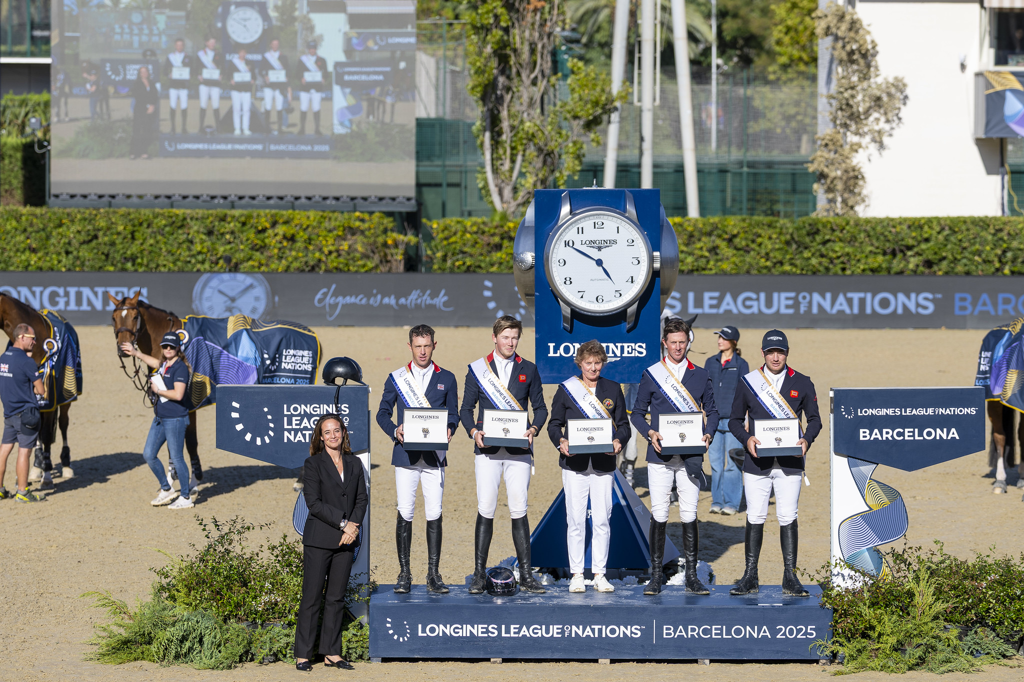 5 octobre 2025 : La Grande-Bretagne, sacrée championne olympique à Paris, marche sur l’eau depuis un an et demi. L’année 2025 en a été la confirmation. Entre les mains expertes de l’irremplaçable Di Lampard, qui aurait pourtant dû prendre sa retraite après les derniers Jeux olympiques mais a choisi de prolonger le plaisir jusqu’à 2028, l’Union Jack a flotté sur Barcelone, pour la finale de la Ligue des nations Longines. Après un barrage face à l’Irlande remporté par Jerenmias vh Hulstenhof, alias Hello Jefferson et Scott Brash, déjà lauréat du Grand Prix de la ville avec Hello Folie, le collectif britannique était sur son nuage. © Leanjo de Koster / FEI
