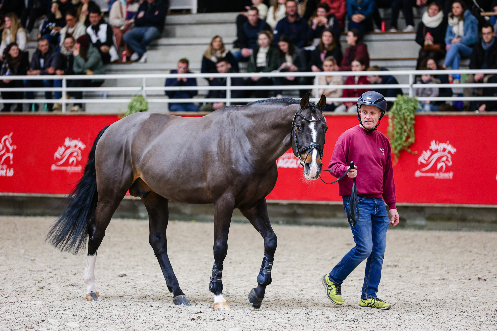 23 février 2025 : Quel privilège que de voir l’immense Casall en personne ! Le salon des étalons de sport de Saint-Lô, rendez-vous incontournable du mois de février, qu’elle que soit l’année, a eu l’honneur d’accueillir ce grand sire dans ses boxes durant trois jours. En état de forme impeccable du haut de ses vingt-six ans et après un très long transport depuis le Holstein, l’ancien partenaire sportif de Rolf-Göran Bengtsson semble immortel. © Mélina Massias