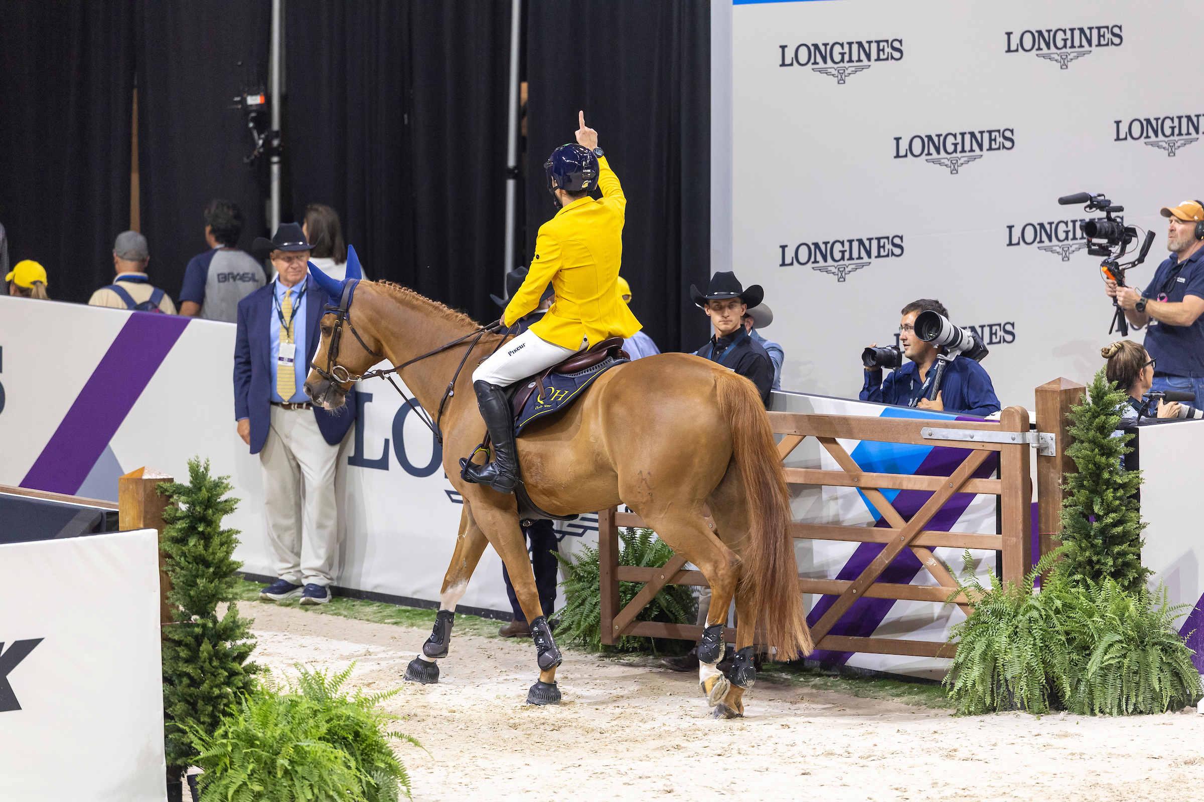 Le poing levé, Daniel Deusser a bouclé l’un des trois doubles zéro de la finale avec son surprenant Otello de Guldenboom, qui semble se bonifier à chaque sortie. © Tiffany Van Halle / Hippo Foto
