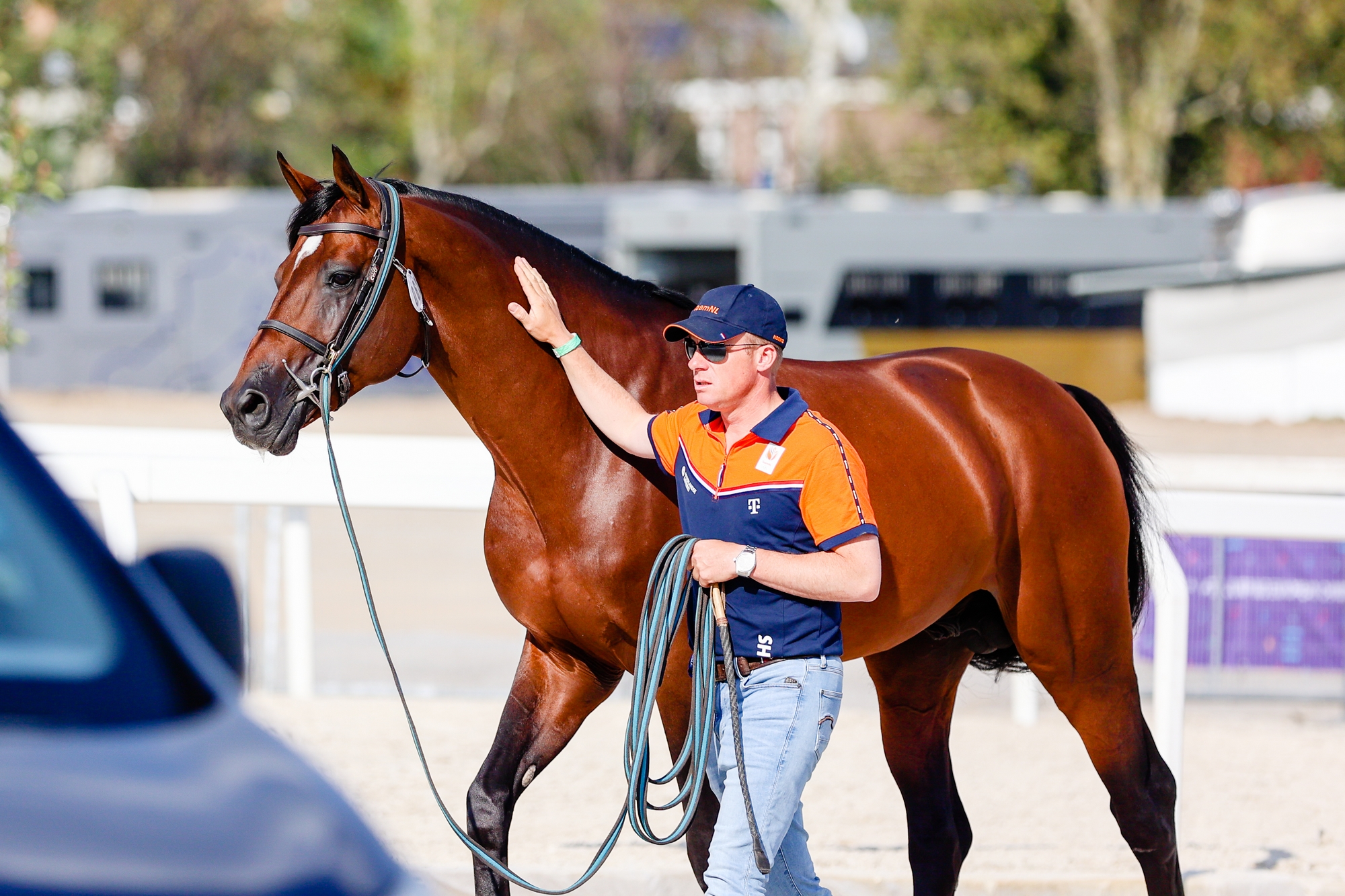 Depuis plusieurs années, Willem Greve peut s'appuyer sur Richard Skillen, l'ange gardien de ses montures. © Mélina Massias