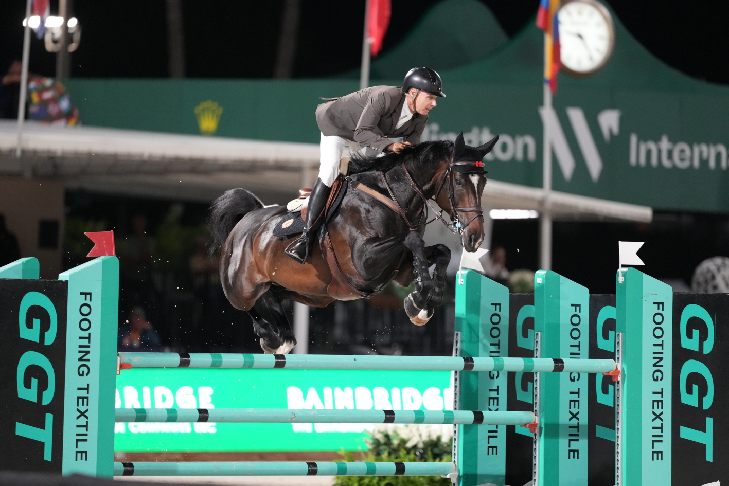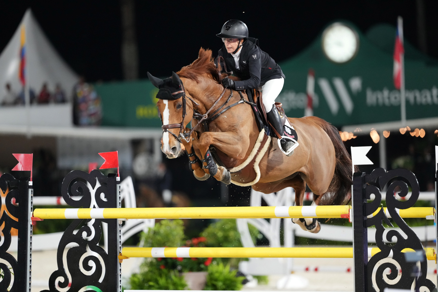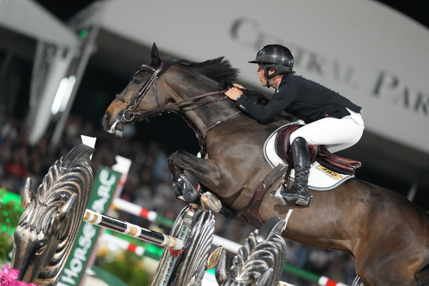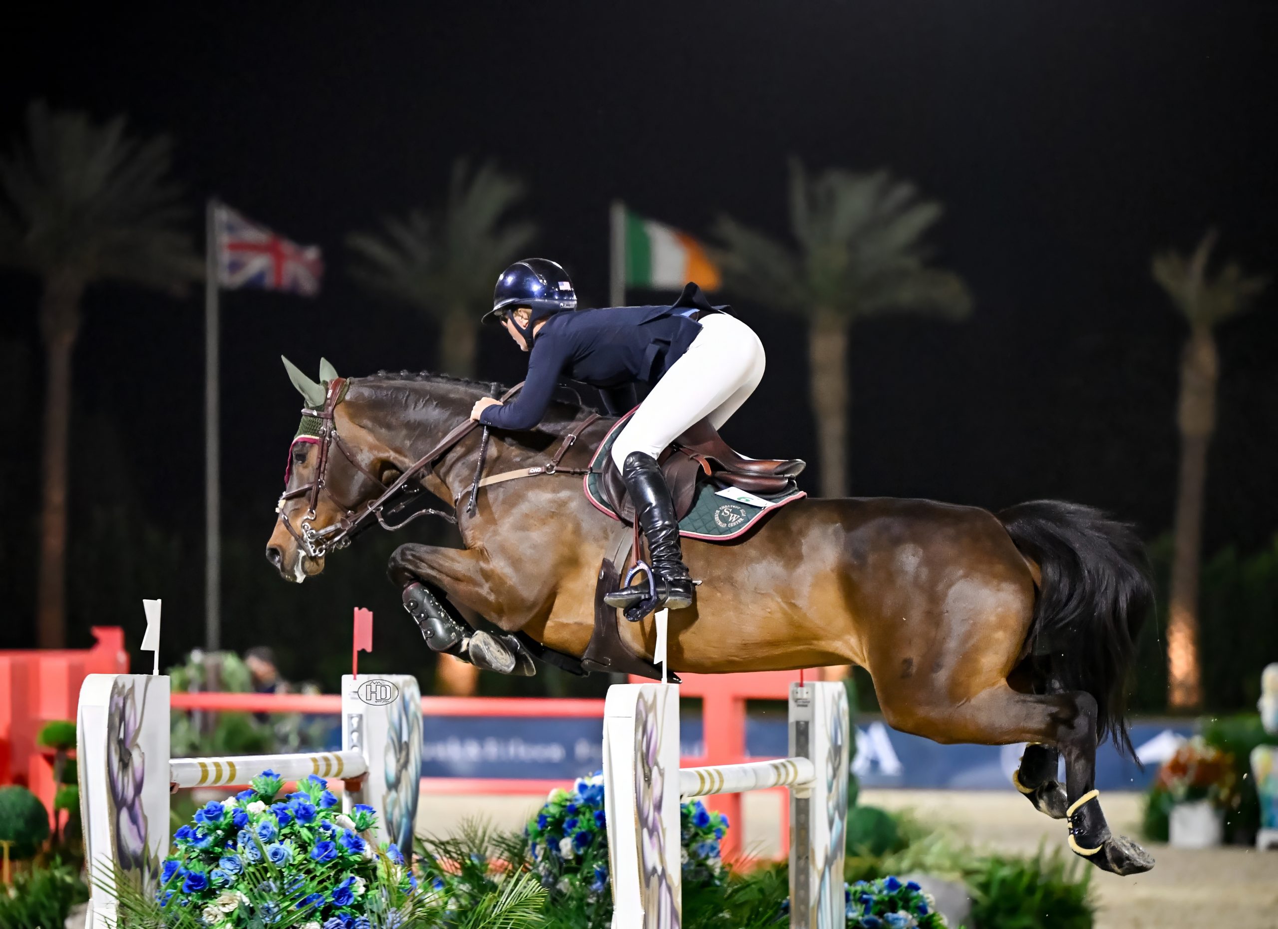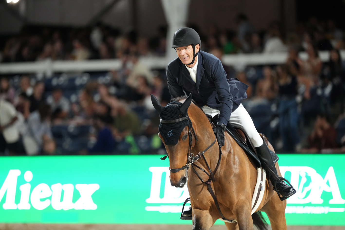“C’était seulement la deuxième épreuve en nocturne de Qoachella. Elle est entrée en piste et s’est magnifiée grâce au public. C’est une jument incroyable”, a loué le cavalier de la fille de Mosito vh Hellehof et petite-fille de… Ferro, grand sire de dressage. Née en Belgique, chez Gebroeders De Beule, la belle a débuté sa formation sur ses terres natales, aux rênes de Djani De Beule, avant d’effectuer quelques sorties aux côtés de Gilles Van Hamme et Dimme d’Haese. Elle a ensuite été acquise par Laurent Guillet et Artic Partners et a évolué en France sous la selle de Charlotte Léoni à sept ans. Repérée par la société Grand Road Partners, qui en est aujourd’hui propriétaire, la BWP a traversé l’Atlantique pour intégrer l’écurie de Katherine A. Dinan, élève de Beat Mändli. “Comme mon piquet n’était pas très fourni, Katie m’a proposé de la monter. Remporter la victoire ce soir pour toute l’équipe est extraordinaire. Qoachella est très intelligente : elle sait exactement où sont les barres et est très respectueuse. Elle sait ce qu’elle fait, mais elle est aussi très cool dans son attitude.” Samedi, Qoachella était confiée aux bons soins d’Amanda, l’épouse de Beat Mändli et ancienne groom de… Milton, le légendaire “ange blanc” de John Whitaker ! Sans doute le petit plus qui a fait toute la différence.