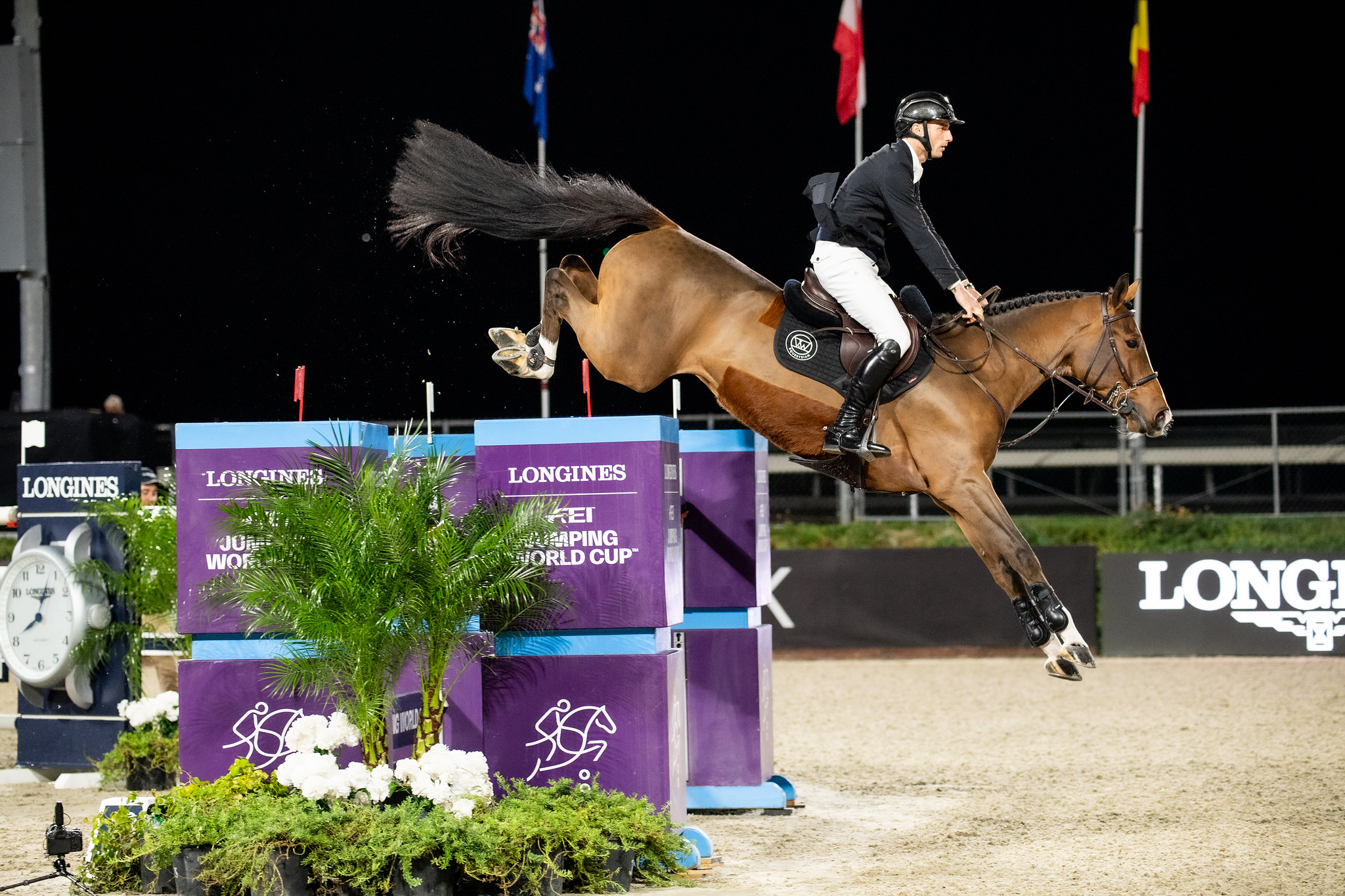Ouvreur du second parcours aux rênes de l’exceptionnel Gangster Montdesir, Richard Vogel a d’emblée donné le ton. L’Allemand n’est associé au Selle Français, pépite de l’élevage de Claire Rebollar et Sylvain Supligeau, que depuis septembre, mais a déjà transformé sa carrière. Âgé de neuf ans, le fils de Kannan s’affirme comme l’un des meilleurs chevaux de sa génération. Formé par Julia Dallamano et Simon Lorrain, le bai a ensuite été aperçu aux rênes de Cian O’Connor, Karoline Sloth Kjaer, Jana Wargers et Angelica Augustsson Zanotelli avant de trouver son binôme. Depuis, les deux complices font sensation à chacune de leurs sorties. Et à Santa Anita, où se tiendront les épreuves de jumping des Jeux olympiques de Los Angeles dans un peu moins de trois ans, Richard Vogel et Gangster Montdesir ont bien failli ravir leur cinquième et plus belle victoire commune. Grâce à un double sans-faute bouclé en 34’’39, ils ont tenu la corde de longues minutes, avant d’être délogés par les ultra compétitifs McLain Ward et High Star Hero.