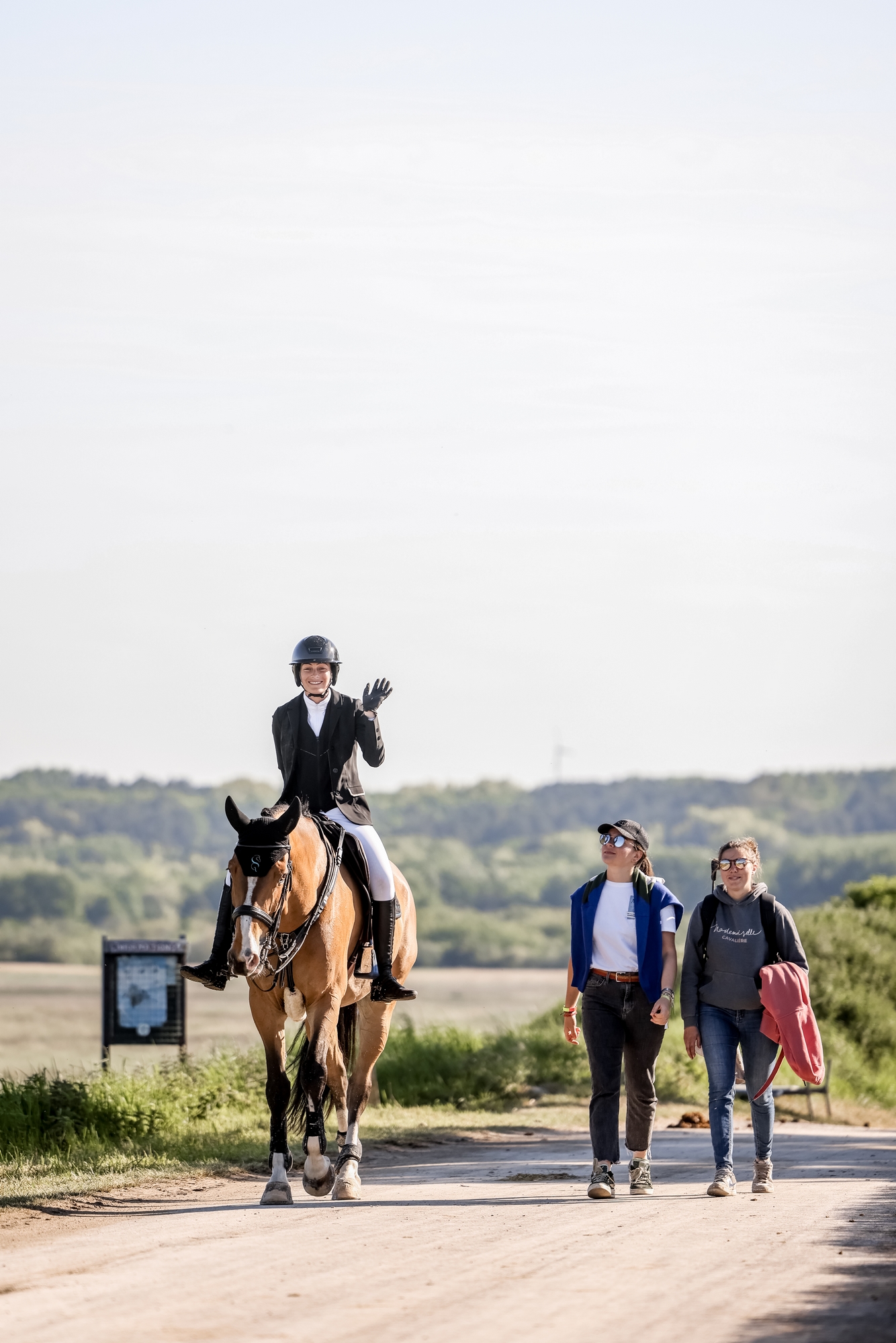 En 2022, j’avais en tête l’image des cavaliers qui ne font que cela de leurs journées, de leurs vies, sans avoir d’autres centres d’intérêts à côté. C’est décidé : les chevaux seront ma vie, je vais faire cela. Par contre, je ne ferais pas que ça. J’aime voyager, découvrir d’autres choses. J’ai envie d’avoir une vie de famille dans le futur et je ne veux pas être en concours tous les week-ends ni m’enfermer complètement dans une seule case. Ce n’est pas comme cela que j’imagine ma vie. Lorsque je suis aux écuries, et j’y suis tous les jours, je suis à deux cent pour cent. Avant, j’imaginais trop que pour être cavalier, il fallait monter au moins dix chevaux par jour. Chacun peut créer son système comme il le souhaite, mais je n’imagine pas le mien comme cela. Si j’arrive à mettre en place tout ce que je souhaite, tout en étant rentable, je pense parvenir à tout concilier. J’aimerais également effectuer des investissements en dehors des chevaux. C’est quelque chose qui m’intéresse beaucoup. Aujourd’hui, je peux dire que cavalière sera mon métier, sans pour autant m’imaginer passer trois-cent-soixante-cinq jours par an aux écuries, de 7 heures à 19h30. Je sais que je ne peux pas monter dix chevaux par jour. Même si je travaille à le renforcer, mon physique n’est pas le plus solide du monde. J’ai appris à m’écouter. Alors, quand j’arrive aux écuries le matin, j’ai le sourire. Ce matin (entretien réalisé vendredi 24 octobre, ndlr), je faisais marcher Grand Duc en main. Il faisait super froid, mais j’étais très heureuse d’être là. J’ai envie de garder cet état d’esprit et ce bonheur. Il y a des jours plus difficiles que d’autres, où l’on a moins le moral, moins d’envie, et c’est normal, mais je suis heureuse de la vie qui est la mienne actuellement. J’aimerais que cela continue.