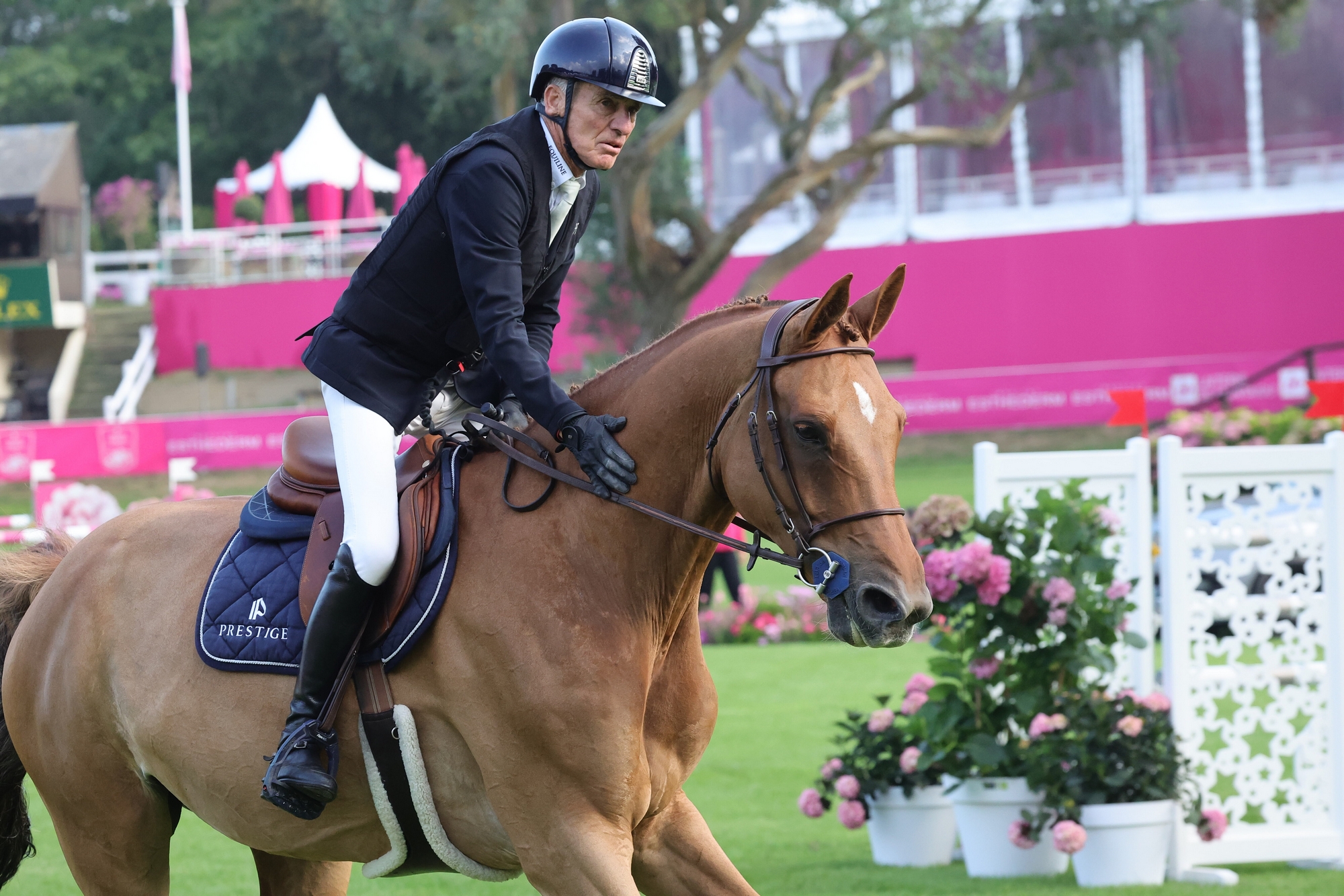 S’il fallait un nom pour illustrer le slogan “l’équitation de sept à soixante-dix-sept ans”, celui de Michel Robert s’imposerait aisément. Le détenteur du palmarès français le plus garni en saut d’obstacles, avec quinze médailles en grands championnats internationaux, une victoire en finale du Top Ten IJRC, une autre lors de la finale du Longines Global Champions Tour et de multiples succès en Grands Prix et Coupes des nations, fêtera son soixante-dix-septième anniversaire à la veille de Noël prochain. En octobre 2013, il annonçait son retrait des compétitions de très haut niveau, sans pour autant laisser ses bottes au vestiaire. Depuis, son inoxydable silhouette trouve toujours sa place aux remises des prix. Sa belle saison 2025 lui a ouvert, une nouvelle fois, les portes du CSI 5*-W de Lyon, quatre ans après sa dernière participation à ce niveau. Engagé dans les épreuves intermédiaires, l’Isérois s’est offert de chaleureuses ovations mais aussi une belle sixième place à 1,50m avec Calasto, son meilleur complice actuel. Rencontré durant le CHI Longines Equita Lyon, concours emblématique du calendrier hexagonal et dont il a accompagné l’évolution, Michel Robert a posé son regard sur les mutations du sport, la nouvelle génération et évoqué quelques beaux souvenirs.