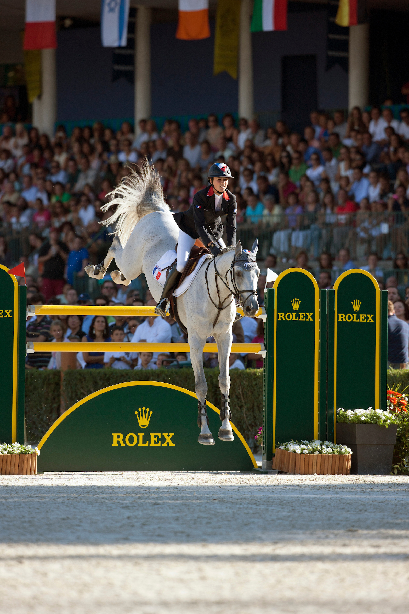 Comme Baloubet était aux écuries et que je suivais son évolution avec mon cavalier, je le connaissais déjà. En apprenant à le connaître en selle, j’ai eu la confirmation qu’il débordait de sang ! En revanche, il saute mieux que tous les autres chevaux ! Mais c’est vrai qu’il est assez difficile à gérer. Il y a des concours où il se sent moins bien et d’autres où il est plus à l’aise. Quand on est dans le premier cas de figure, on peut vite perdre toute forme de contrôle. À l’inverse, s’il se sent bien et qu’il est en forme, c’est un véritable crack. Lorsque j’aborde des triples à 1,60m avec lui, je n’ai pas d’éperon, je ne mets pas de jambes et je dois même lui dire “oh oh” (rires).