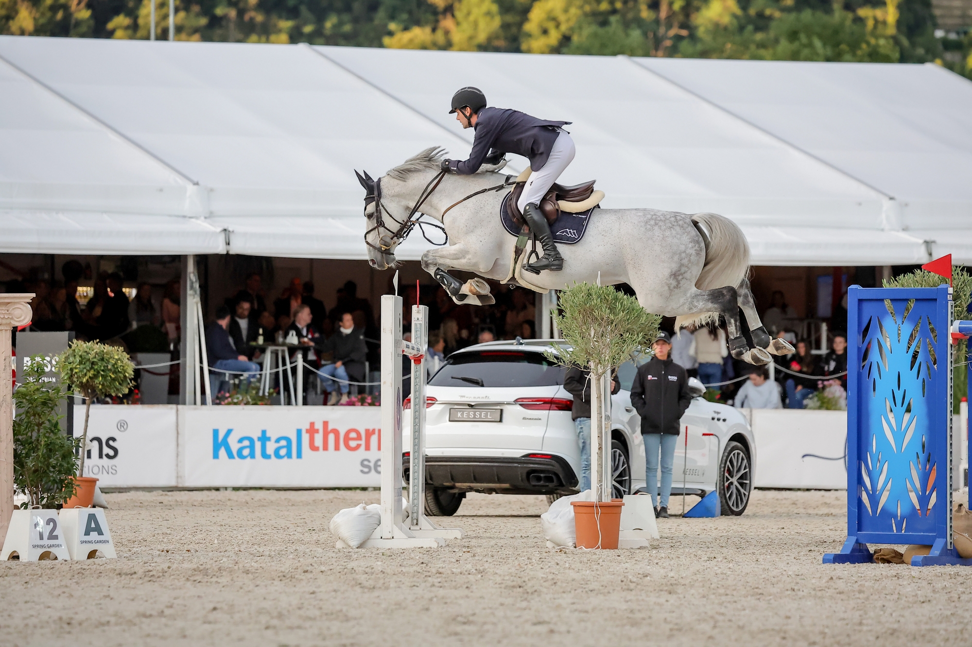 Avec Niamh McEvoy et Billy Twomey, les troupes irlandaises étaient en forme sur la tournée du soleil. Et elles auraient même pu enregistrer un triplé gagnant. Finalement, Ciaran Nallon, qui a bouclé le parcours à quatre points le plus rapide dans l’acte initial de la compétition, s’est arrêté au quatrième rang avec Casalla Blue PS, une fille de Casallco et petite-fille de Chacco-Blue. Le tir groupé du Trèfle a été perturbé par le Portugais Mario Wilson Fernandes et son jeune et prometteur Cool Grey, neuf ans. Le duo a été le premier a laissé toutes les barres sur leurs taquets dans ce Grand Prix, mais n’a pu éviter deux points pour temps dépassé. Qu’importe, le fils de Windows vh Costersveld, alias Cornet Obolensky, et petit-fils de Carthago a tout le temps de mûrir, pour suivre les traces de sa sœur utérine, Cinca 3, au départ des Jeux olympiques de Tokyo sous selle néo-zélandaise en 2021 puis médaillée d’argent par équipe et douzième en individuel avec Michael Duffy aux Européens de Milan en 2023, mais aussi de son oncle, un certain H&M*Chilli Willi, reproducteur intéressant, vingt-deuxième des Jeux équestres mondiaux de Tryon en 2018 et surtout gagnant des Grands Prix 5* de Chantilly en 2018 et Doha en 2019 avec Nicola Philippaerts avant sa disparition brutale en 2021.