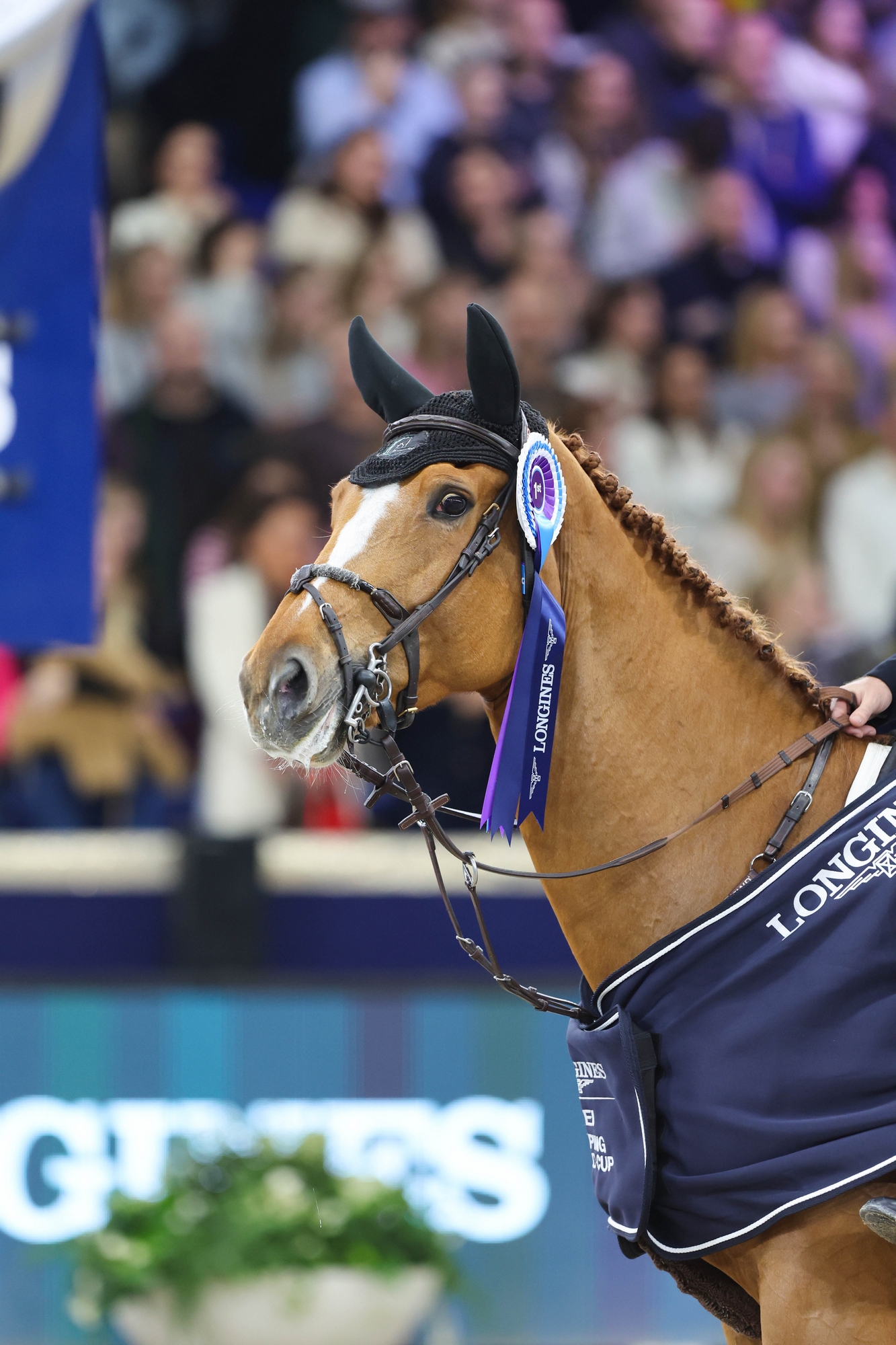 Si le feu sacré qui anime Qalista dans chaque once de son être n’est pas toujours évident à percevoir de l’extérieur, une démonstration de son mental à toute épreuve a marqué sa saison 2025. La seule véritable ombre au tableau sans rature de l’alezane réside dans son abandon dans le Super Grand Prix de Prague. Alors que ses chances de victoires étaient non négligeables, la belle n’a pu éviter une faute dans le triple en première manche, alors que la lumière s’est quasiment éteinte, plongeant la O2 Arena dans la pénombre. Sous pression en seconde manche pour rattraper ce couac technique, Gilles Thomas a été contraint de lever la main après un refus dans le triple. “J’ai tout tenté en deuxième manche pour essayer de rattraper mon score du premier tour. La victoire s’est jouée à quatre points et avec le recul, j’aurais peut-être dû adopter une autre stratégie, mais c’est ainsi. J’avais beaucoup d’attentes pour ce Grand Prix et j’ai pris trop de risques dans le triple. Je n’étais pas assez concentré et un peu déçu après l’incident du parcours initial. Après Prague, j’ai ressauté à la maison et emmené Qalista sur un concours d’entraînement, où elle s’est très bien comportée”, relève son cavalier. Et l’alezane a parfaitement rebondi. Quatrième de sa première finale du Top Ten Rolex IJRC après une faute rageante, elle a remporté le Grand Prix Coupe du monde de Malines deux semaines plus tard. La cerise sur le gâteau d’une année d’exception.
