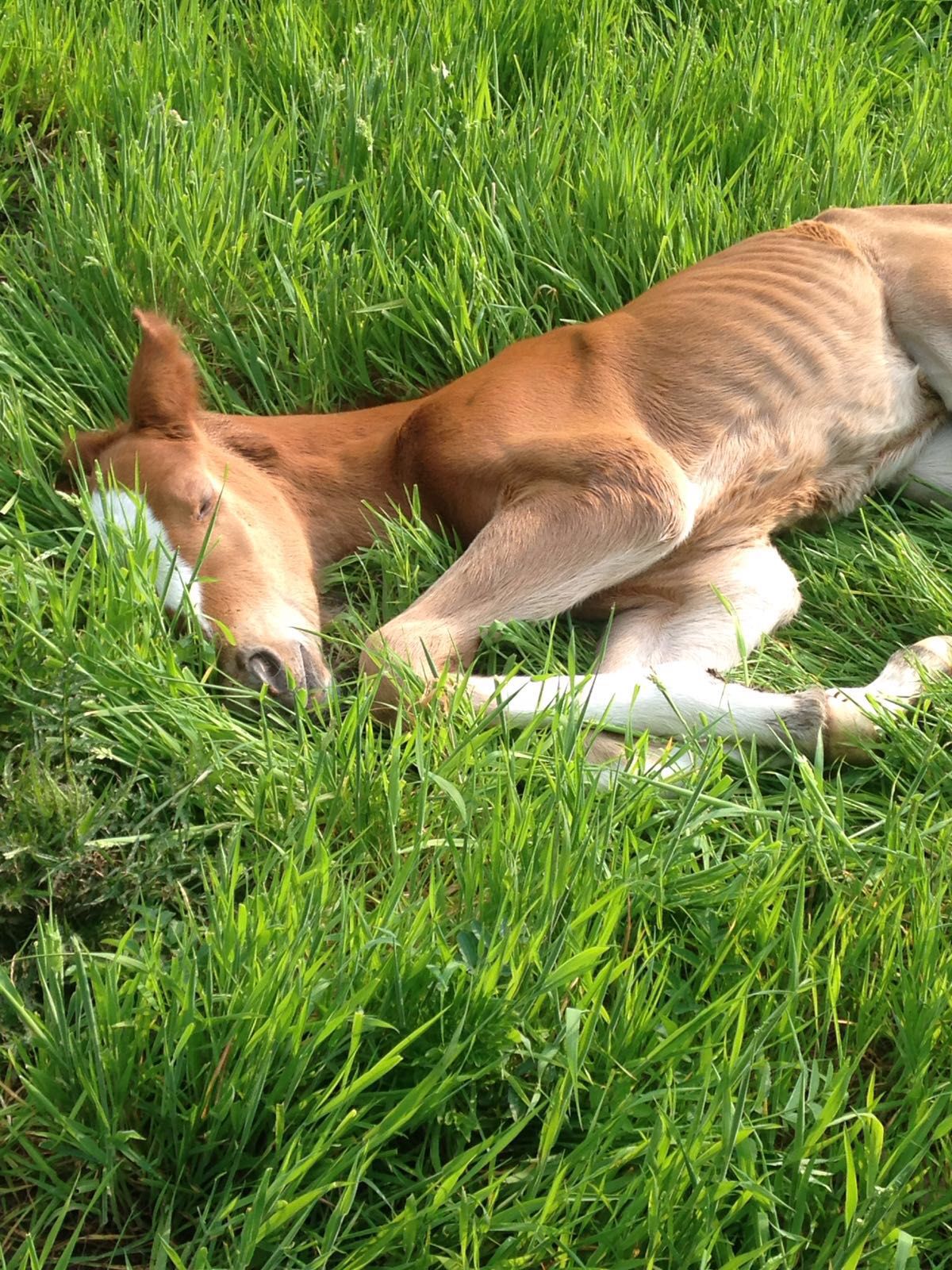 La toute jeune Qalista DN en plein rêve dans l'herbe verdoyante de son royaume natal. © Collection privée