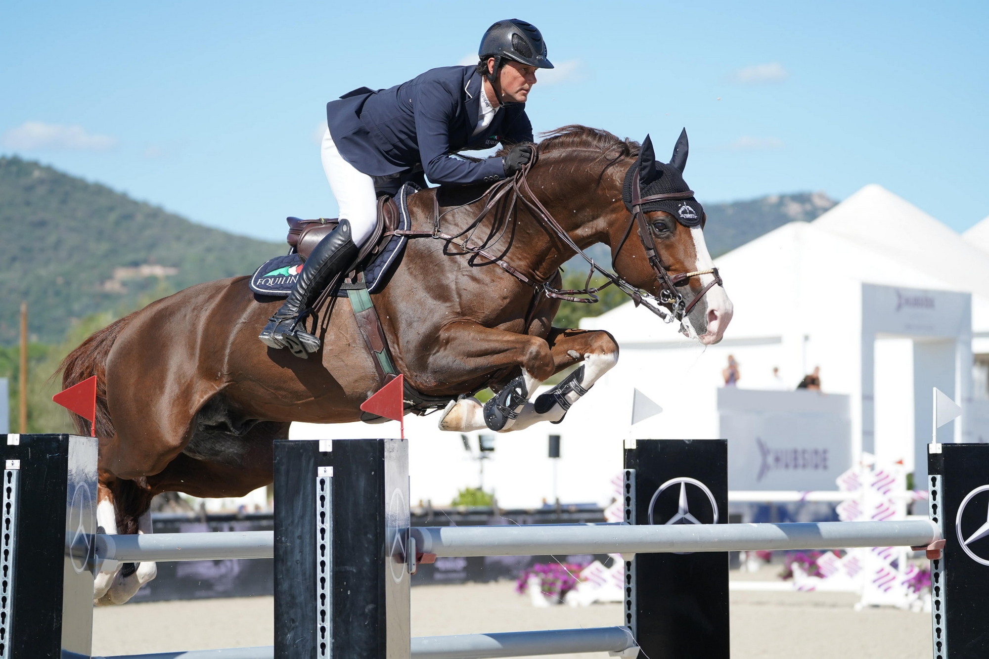 Après trois années passées aux côtés de Bertrand Genin, qui l’a fait progresser de parcours à 0,90m à ses premiers tours - et sans-faute - à 1,25m, Touardo Blue pose le sabot dans l’Hexagone début 2021 et intègre les écuries d’Edward Levy dans le but de poursuivre sa route vers le haut niveau. Mais le Tricolore étant dans une excellente période sportive avec Rebeca LS et Uno de Cerisy, sans compter les compétitifs Broadway de Mormoulin et Sirius Black, et l’épizootie de rhinopneumonie équine n’aidant pas, le fils de Toulon ne reste que peu de temps en Normandie. Après une année quasiment blanche, Touardo Blue retrouve les terrains de concours à huit ans, à la fin de l’été 2022… aux côtés de Nathan Budd. Quelques mois plus tôt, le petit-fils d’Arko III a, en effet, intégré le haras des Rosiers. “Thomas Skilbecq, un ami, nous a présenté Herik Duran et Nathan Budd”, reprend Hugues. “Nathan a essayé Touardo et a senti du potentiel. D’entrée, il a cru en lui, ce qui était moins le cas d’Herik. Il n’avait pas eu le coup de foudre et il a fallu le convaincre. Touardo était un peu en retard dans son apprentissage, mais Nathan a effectué un travail fantastique. Il a pris son temps et a fait les choses calmement. Touardo est resté à l’essai pendant trois mois au haras des Rosiers, puis Herik a acheté la moitié des parts de ma compagne. Je pense qu’une grande partie du mérite revient à Nathan. Le système mis en place par Herik, Chloé Quenon, son épouse, et Nathan est très professionnel. Il a déjà fait ses preuves avec Cashpaid, et permet aujourd’hui à Touardo de se révéler.”