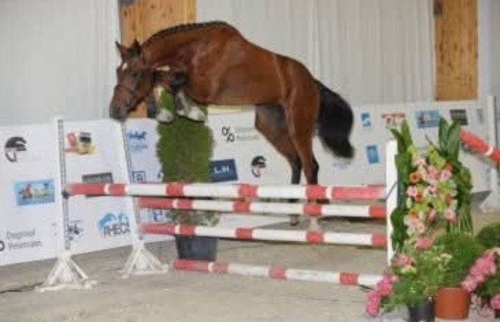Touardo Blue, ici à deux ans lors d'une épreuve de saut en liberté qu'il a remportée, a toujours montré du potentiel. © Collection privée
