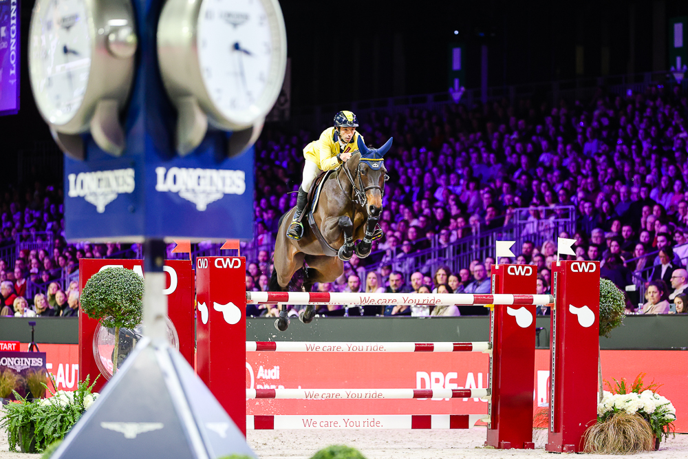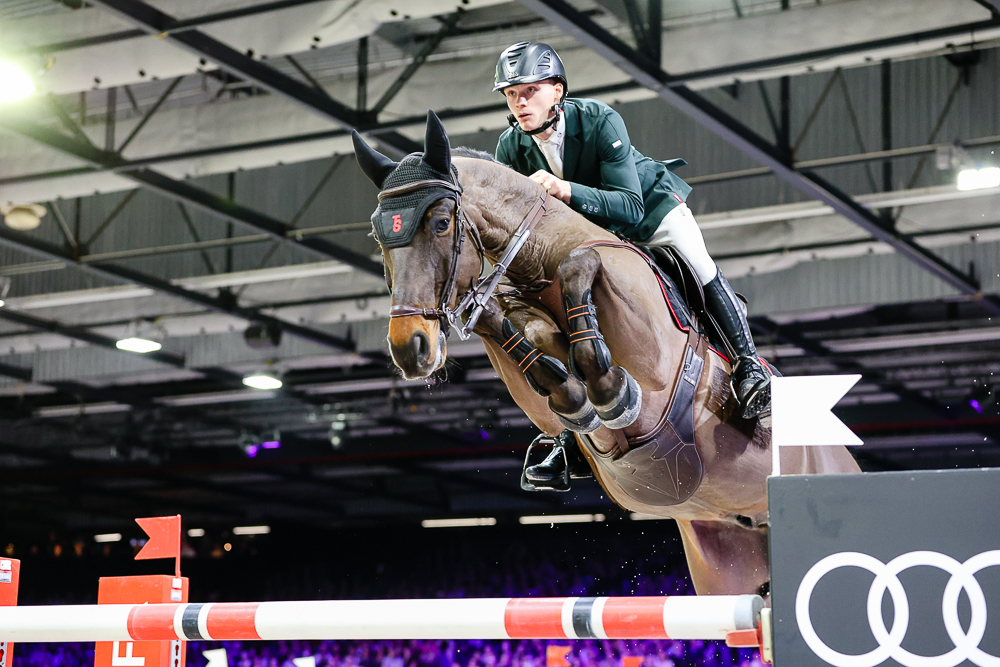 Déçu de sa prestation dans le Grand Prix de la Coupe du monde, qu’il avait remporté en 2025 avec son même Conner 70, Martin Fuchs s’est vengé dimanche, dans le Grand Prix Audi. Le Suisse a imposé son fabuleux complice au palmarès déjà bien garni et a déjà les yeux rivés sur les Mondiaux d’Aix-la-Chapelle qu’il espère disputer avec Hay El Desta Ali, alias Leone Jei. © Mélina Massias