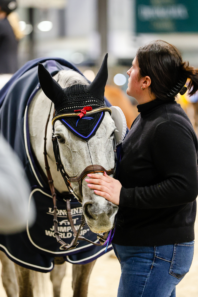En effet, dans le Grand Prix de la Coupe du monde, l’élève a dépassé le maître. Surprenant, Tom Schewe, qui avait déjà montré tout son sang-froid et sa capacité à transformer n’importe quel cheval l’été dernier à Aix-la-Chapelle, s’est hissé au troisième rang avec Congress Blue, bouillonnante jument de neuf ans. L’Allemand présentait aussi Aaron, un propre frère d’Ambassador, qui avait permis à Inès Joly de remporter son premier Grand Prix 5* en 2024 à Monaco. © Mélina Massias