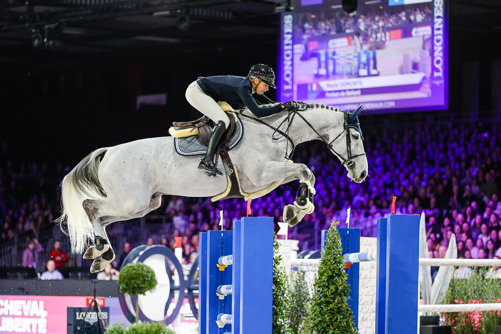 Après avoir réalisé une très belle performance avec Epona du Quesnoy dans l’étape Coupe du monde de Bordeaux en 2025, Marie Demonte s’est cette fois distinguée dans le Grand Prix secondaire de l’événement aux rênes de son généreux Forban de Béliard. Sous les yeux de son naisseur, Gérard Brescon, le fils d’Upsilon s’est classé septième. © Mélina Massias