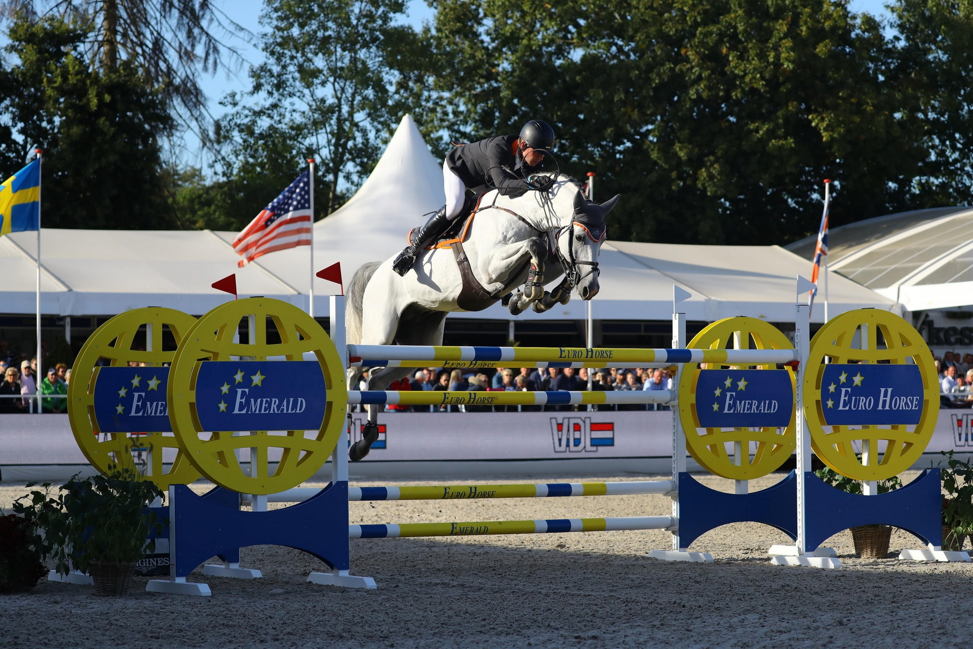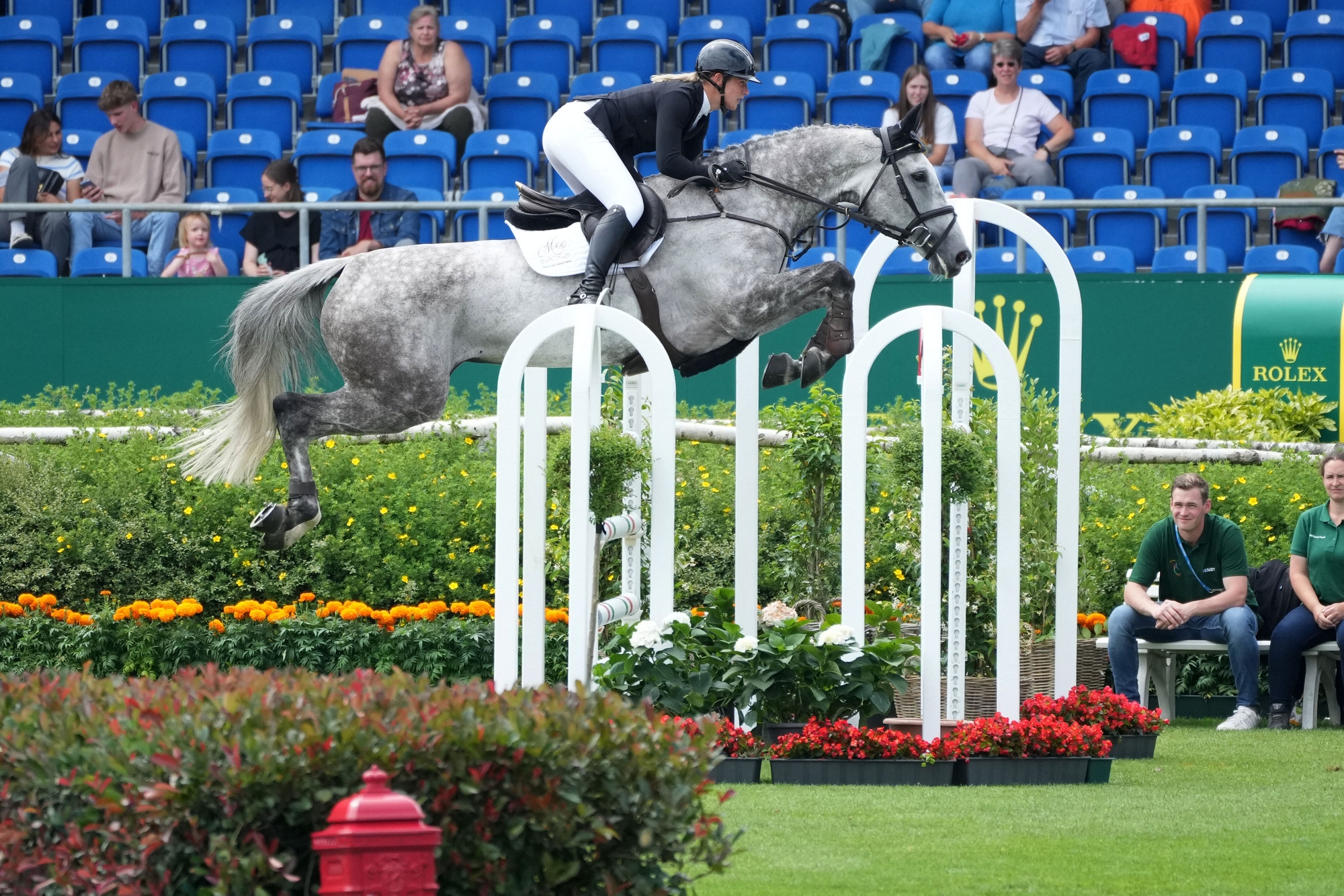 Cian O’Connor, les frères Wachmann et Bryan Balsiger ne sont pas les seuls à avoir choisi les pistes de Vejer de la Frontera pour faire connaissance avec de nouveaux partenaires. Présent sous le soleil espagnol, Max Kühner est aussi accompagné d’une monture qu’il présente pour la première fois sur une piste internationale. Et celle-ci se nomme Greece 5. Sous la selle de l’Allemande Teike Friedrichsen, cette très talentueuse grise de onze ans s’est imposée dans le Grand Prix 4* d’Hohenkirchen en 2023, a fait preuve d’une très grande régularité à 1,55m et s’est classée dans l’épreuve reine du CSI 5* de Hambourg, en mai, pour sa dernière sortie internationale en date. Depuis, celle qui a été formée de A à Z par Teike Friedrichsen a toutefois sauté quelques parcours nationaux. Fille de Mylord Carthago et Online IX (Quinar), sacrée meilleure poulinière vivante du Holstein en 2023 grâce à ses dix-sept produits, qu’elle a tous portés elle-même, Greece 5 a signé deux sans-faute, à 1,35 et 1,40m pour ses débuts avec Max Kühner, jeudi 16 et vendredi 17 octobre. Née chez Margit Petersen, la Holsteiner s’est classée cinquième pour son deuxième parcours avec son cavalier autrichien.