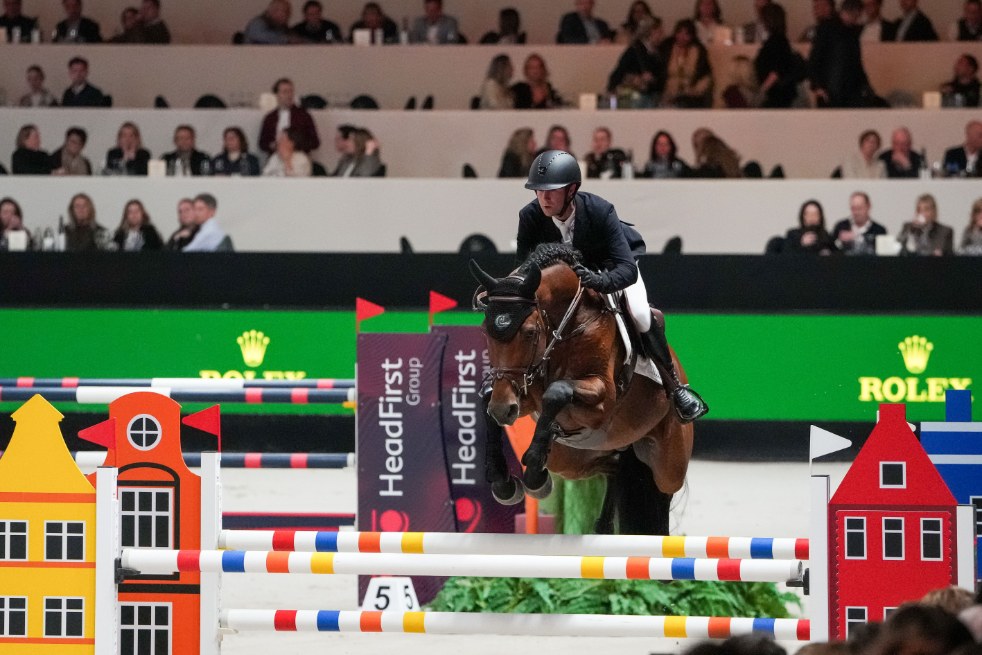 En tête des opérations après deux parcours, Willem Greve s’est frotté à Greenacres Comilfo, sans doute la monture la moins expérimentée de la soirée et la plus délicate à cerner en quelques minutes à peine. Après deux galops d’essai, dont un sanctionné de huit points, le fils de Comilfo Plus qui ne compte… aucune apparition internationale à son actif et n’avait jamais été monté en compétition par son cavalier référent, Richard Vogel, a fait confiance au numéro vingt-quatre mondial. Ce dernier s’est parfaitement servi du temps accordé pour prendre ses marques avec son nouveau binôme avant de s’élancer sur le tracé. Il n’a pas cherché à précipiter ses sauts de détente, bien au contraire, puisqu’il a volontairement arrêté le bai par deux fois devant des obstacles. “J’espère qu’il n’est pas en train de lui apprendre à refuser”, a plaisanté Richard Vogel, toujours enclin à charmer le public avec une pointe d’humour bien sentie. Résultat, le néo-duo a laissé toutes les barres sur les taquets. Après en avoir fait autant avec Julien Epaillard, le hongre ISH de neuf ans, petit-fils de Lux, comme un certain United Touch S, a de nouveau laissé échapper deux fautes, sur les verticaux placés en numéro 3 et en avant-dernière position, aux rênes de Gilles Thomas, son dernier cavalier de la soirée.
